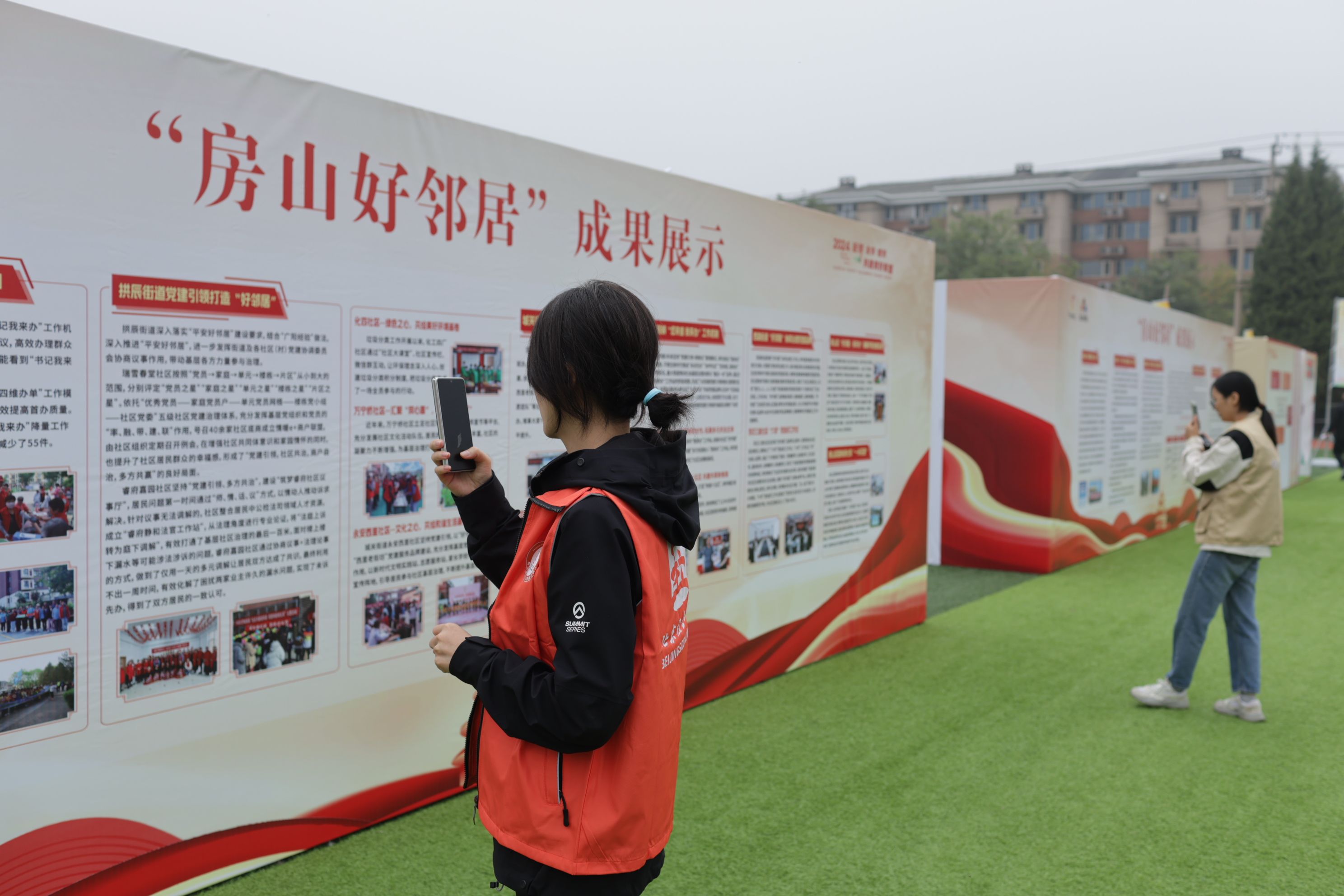 市民和志愿者在参观、拍摄“房山好邻居”成果展示。新京报记者 王子诚 摄