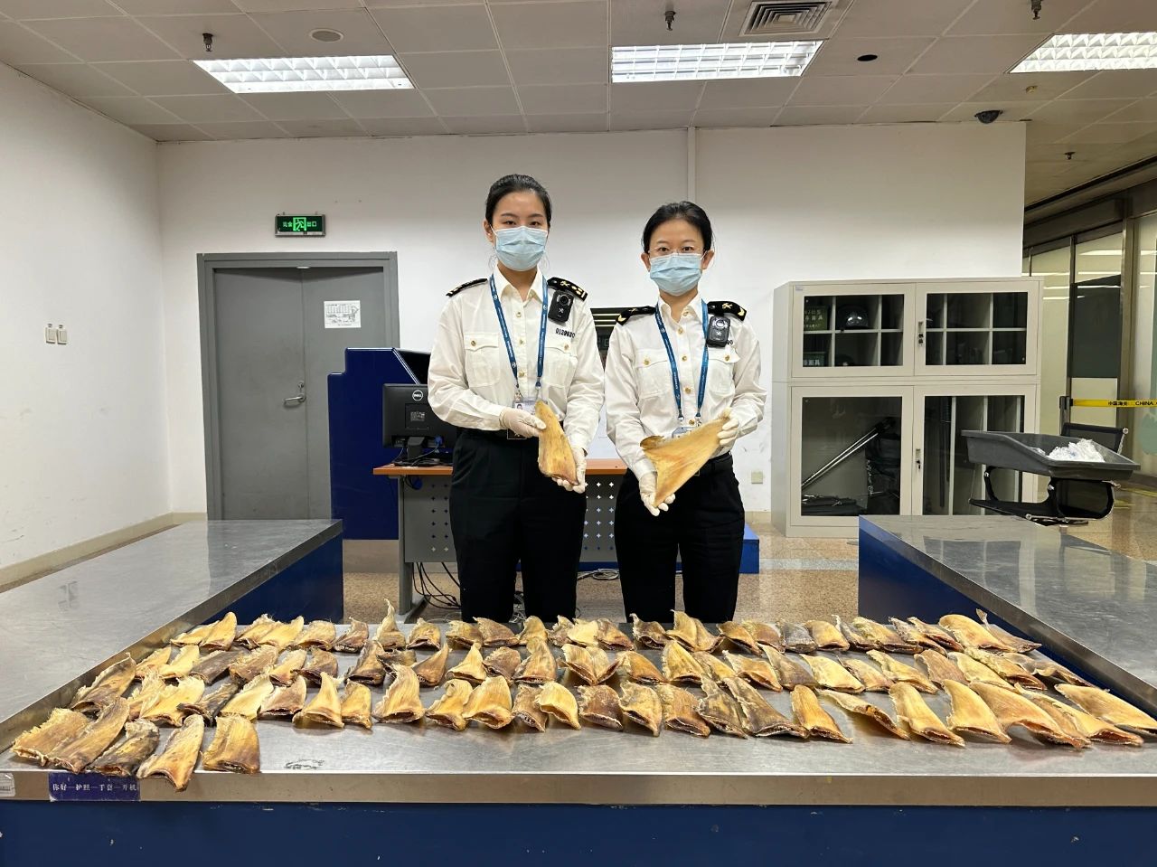 首都机场海关查获鲨鱼翅、盔犀鸟头骨、象牙等多件濒危动物制品
