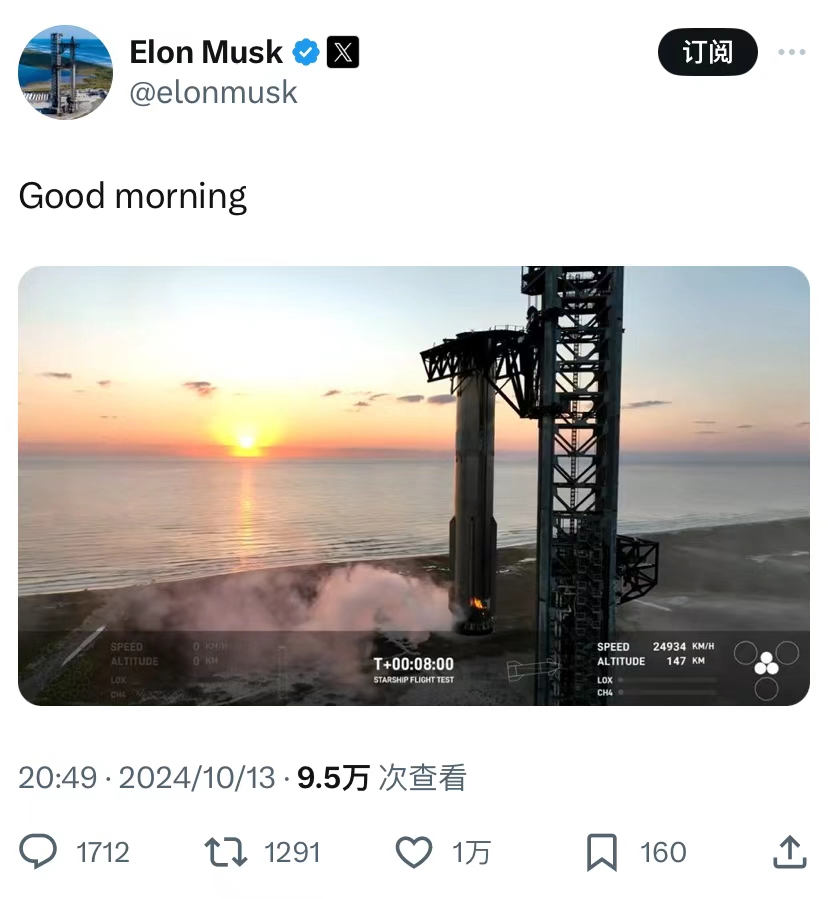 SpaceX首次成功回收星舰,首席执行官马斯克宣布了上述消息。