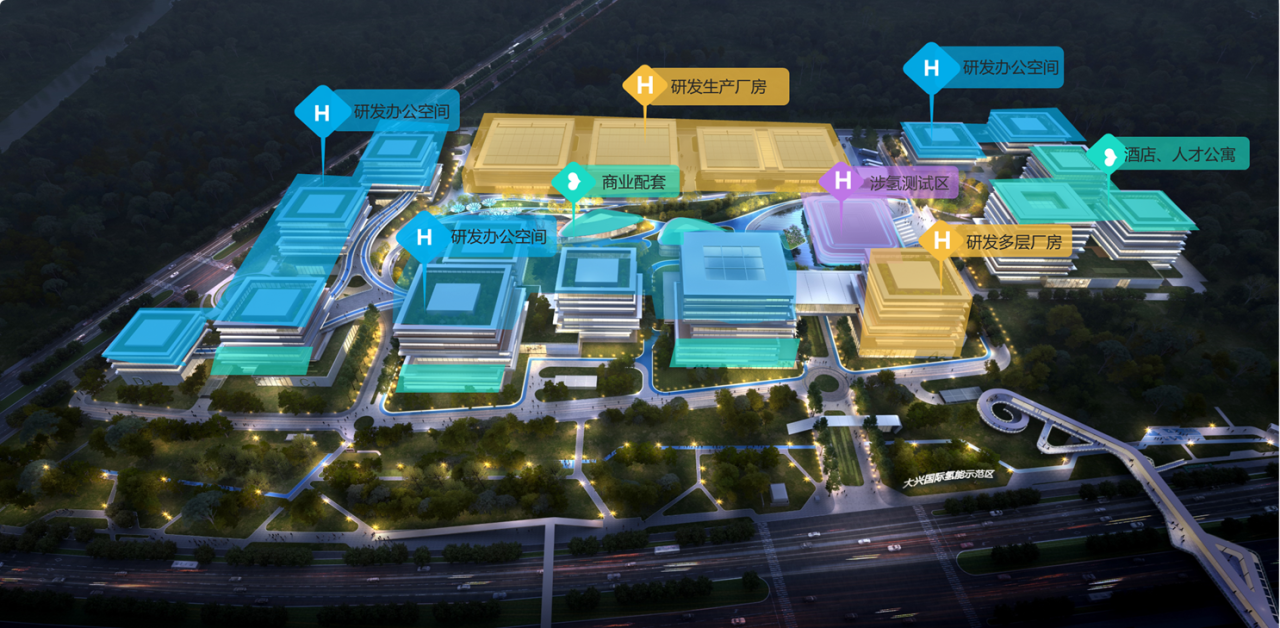 大兴国际氢能示范区将“产、学、研、用”有机结合,推动科技创新和成果转化,已累计合作科研院所、大专院校28家,签订战略协议6家。专注于氢燃料电池发动机等研发的亿华通位于园区内,装配产线每年的设计产能在3000台左右。