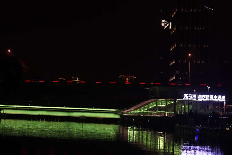 游船从亮马河好运桥下经过,灯光璀璨如繁星。中青报·中青网记者 余冰玥/摄