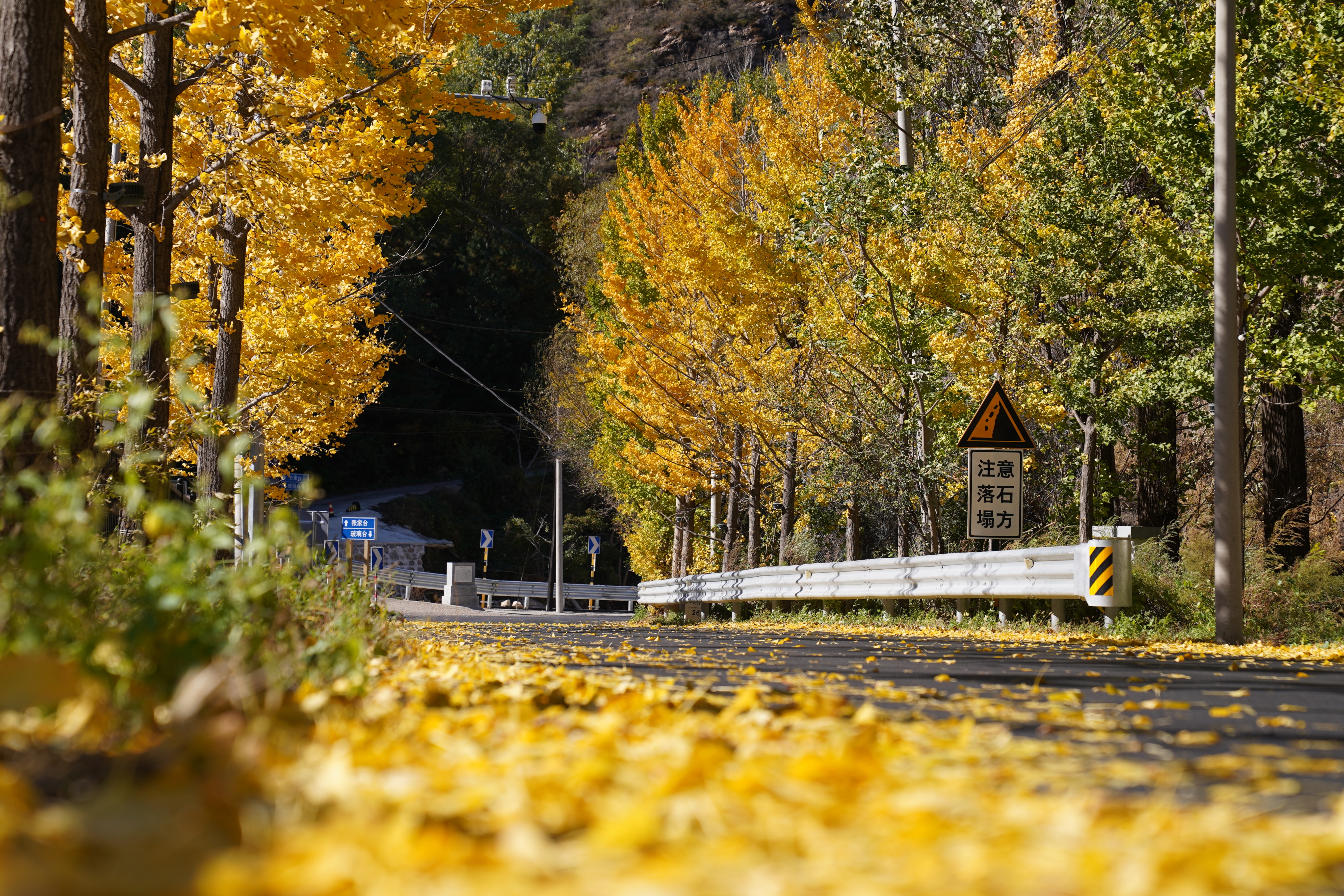 金灿灿的银杏大道,构成了一幅幅绚丽壮美的自然画卷。漫步山间,仿佛走进了一幅绝美的油画。在玻璃台长城脚下,游客徜徉其间,或拍照留影,或闻香自叹,感悟这绽放的最美秋色。