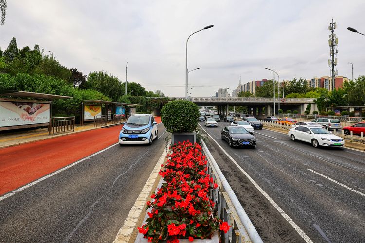 二环沿线的桥区利用花箱种植,兼顾了四季景观和三季花卉延续性。