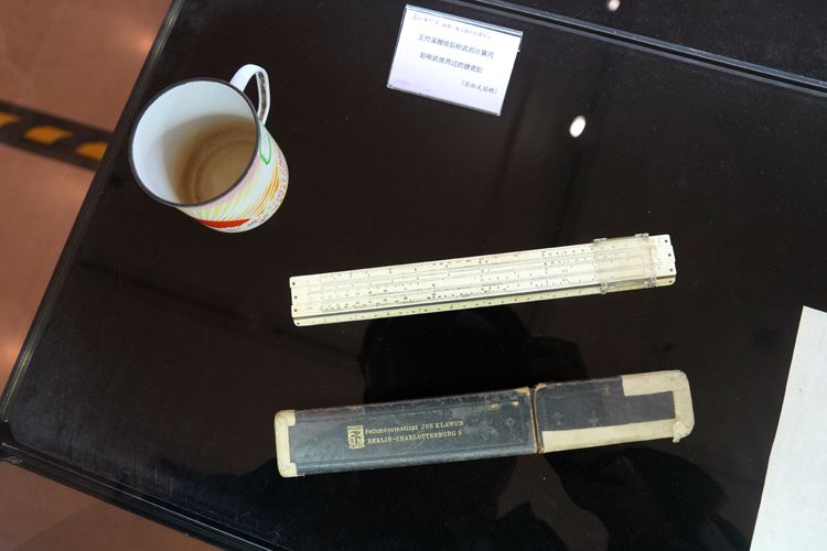 王竹溪赠给彭桓武的计算尺和彭桓武使用过的搪瓷缸。