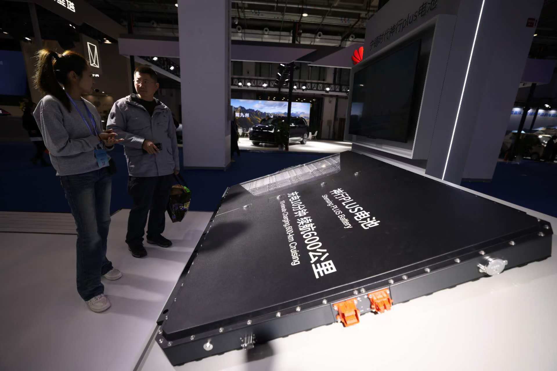 观众在参观宁德时代神行plus电池。今年6月,宁德时代在华北地区的首座电池工厂——北京时代电池基地项目已在北京亦庄开工建设,计划2026年投产,将为北京地区的新能源整车企业配套。