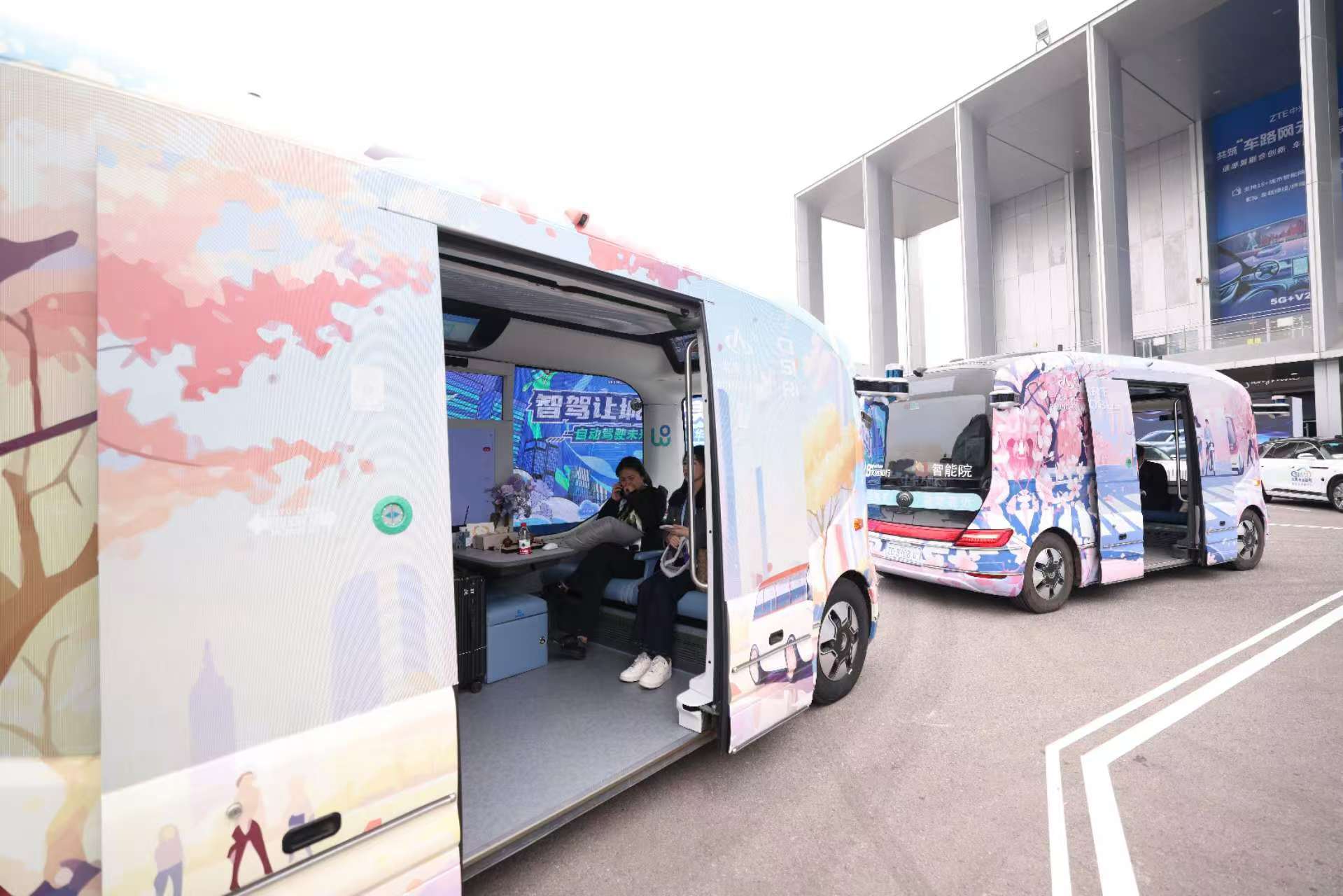 同期举办的自动驾驶未来城市嘉年华上,自动驾驶小巴惹人注目,该车两侧顶着雷达摄像头,造型充满未来感。是全球首款基于高级别自动驾驶小巴的多功能商业化场景,可满足商务、休闲、娱乐、新零售等需求。