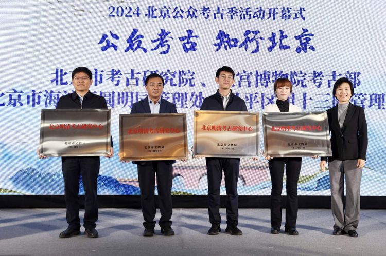 北京市文物局党组书记、局长张立新为北京明清考古研究中心授牌。该中心由故宫博物院考古部、北京市考古研究院、北京市海淀区圆明园管理处、昌平区明十三陵管理中心合作建立。