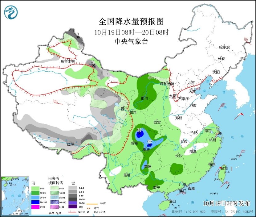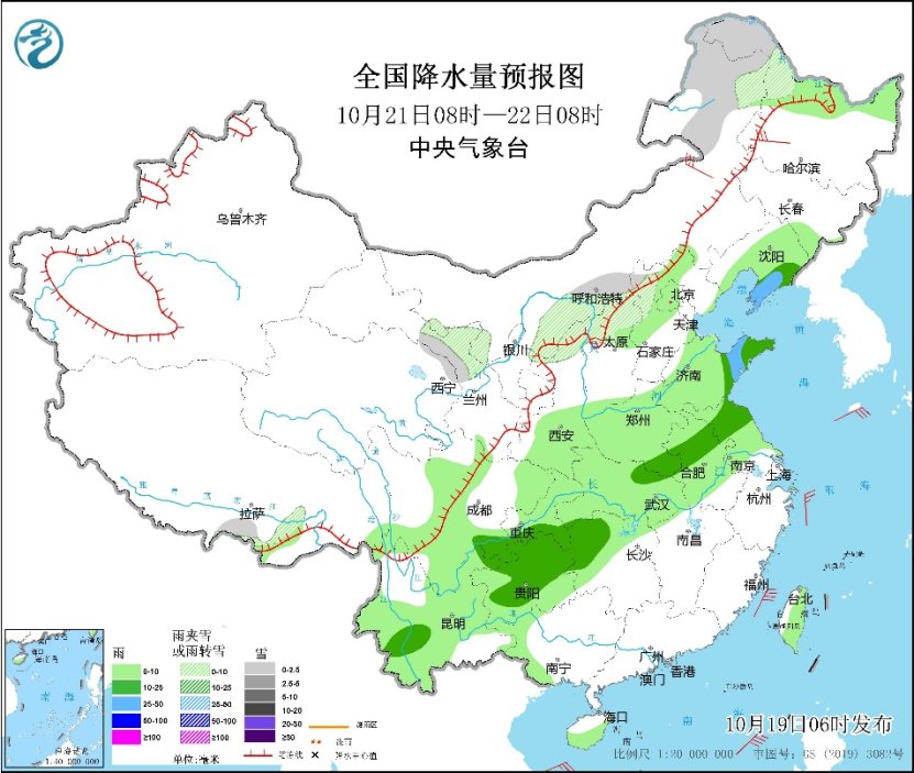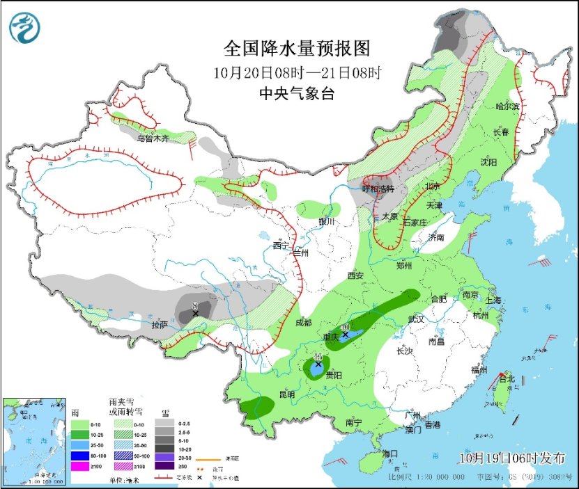 19日起,受另一股冷空气东移影响,我国自西向东还将有大范围雨雪天气,总体强度不强。19日至21日,西北地区东部、西南地区东部、东北地区大部、江汉、黄淮、江淮、江南西部和北部等地将有小到中雨(雪),其中西南地区东部部分地区有大雨,局地暴雨;新疆北部、青藏高原东部和南部、内蒙古、山西中北部、河北西部和北部、北京西部和北部山区、黑龙江西部等地部分地区有小到中雪或雨夹雪,局地大到暴雪。