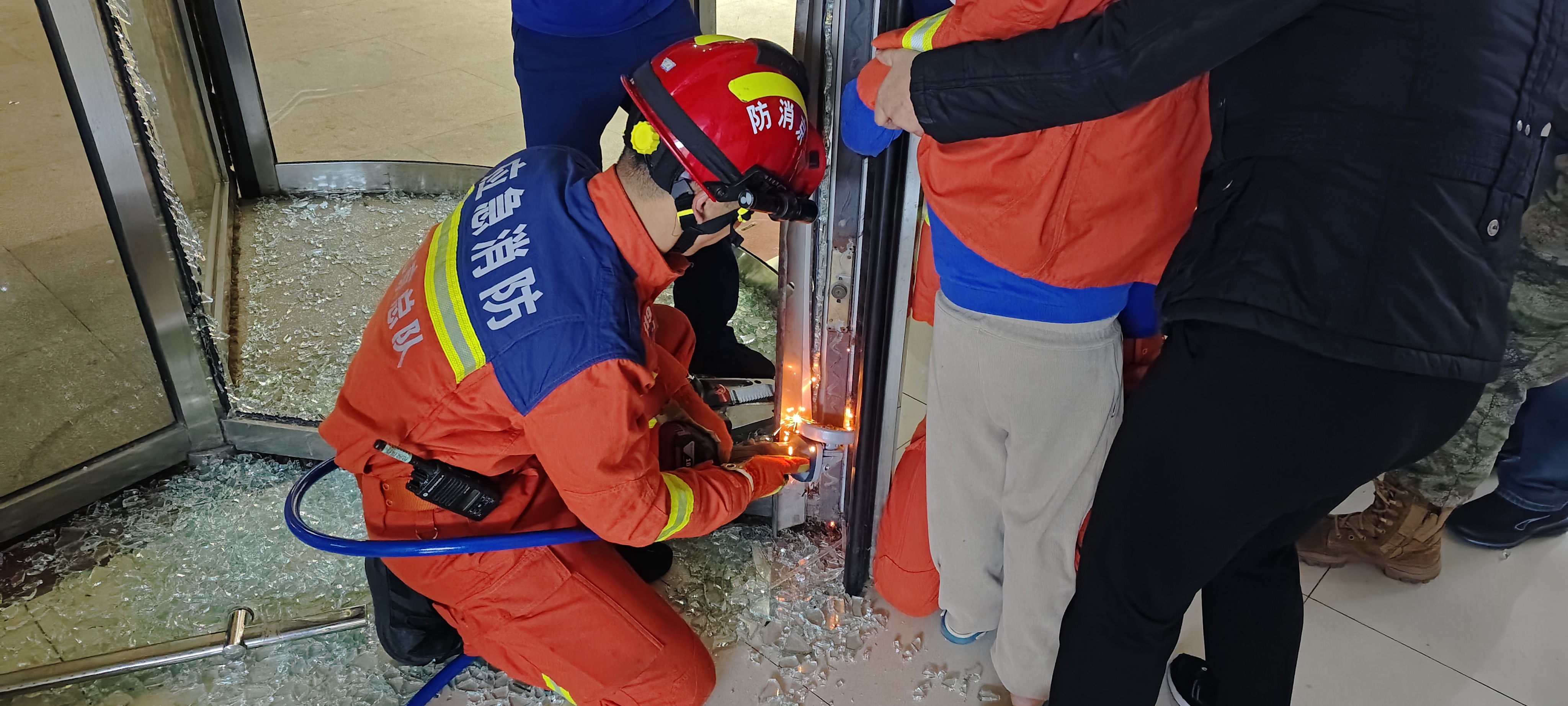 男童手卡在旋转门内,北京石景山消防紧急救援