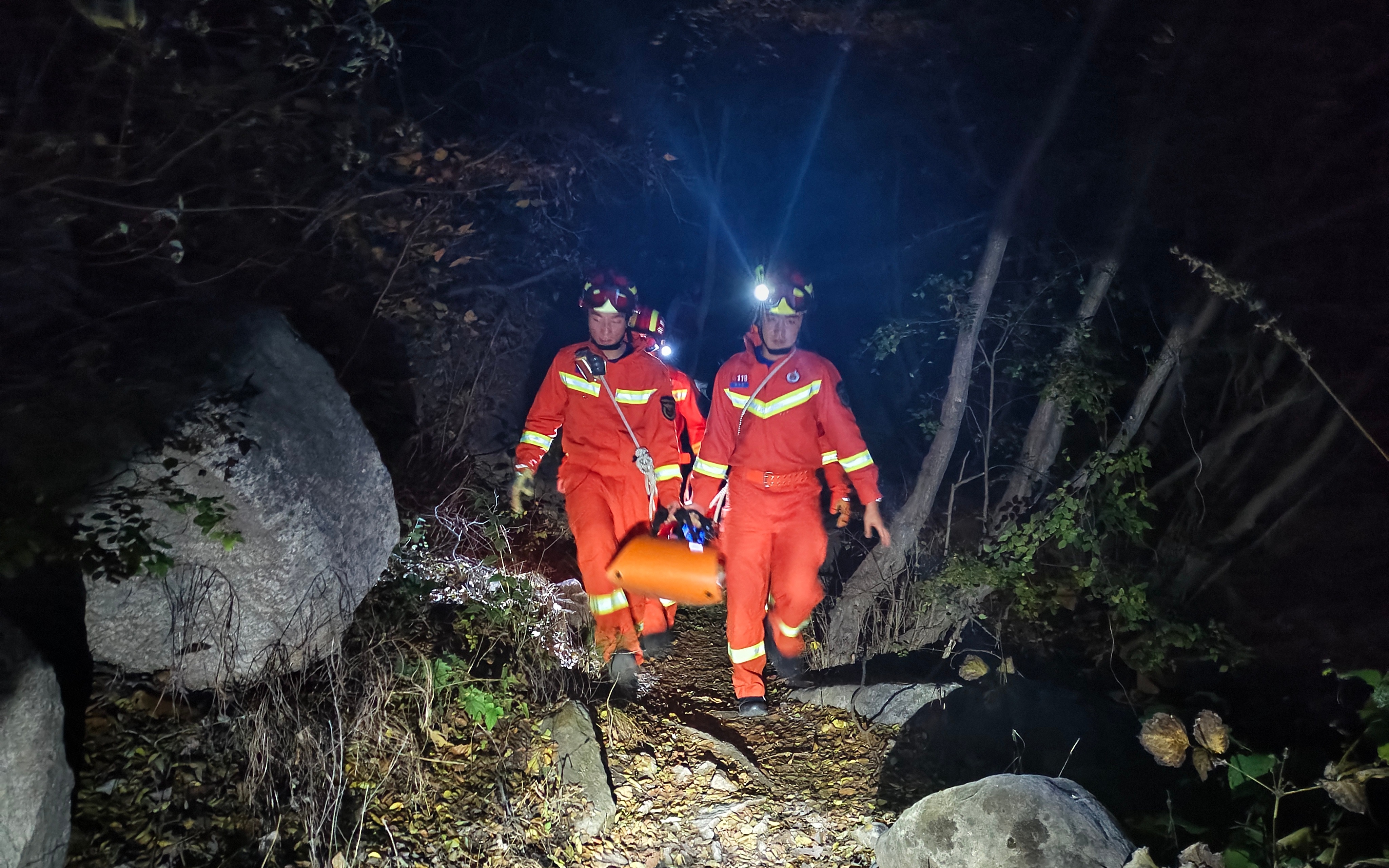 指挥员李磊考虑到天黑后下山困难,加之医护人员建议前往医院做进一步检查,决定立即展开救援。短暂休息后,消防救援人员将该女子安置在担架上,用绳索固定,接力抬下山,18时19分,女子被转移至安全地点。