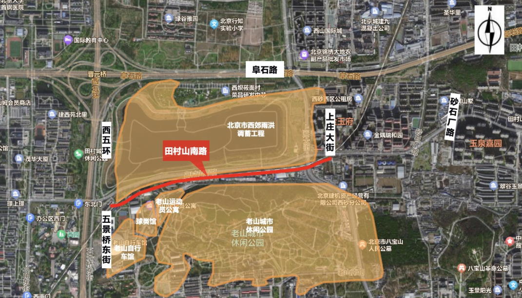 田村山南路(五景桥-上庄大街)路段区位图。图/“北京石景山”微信公众号