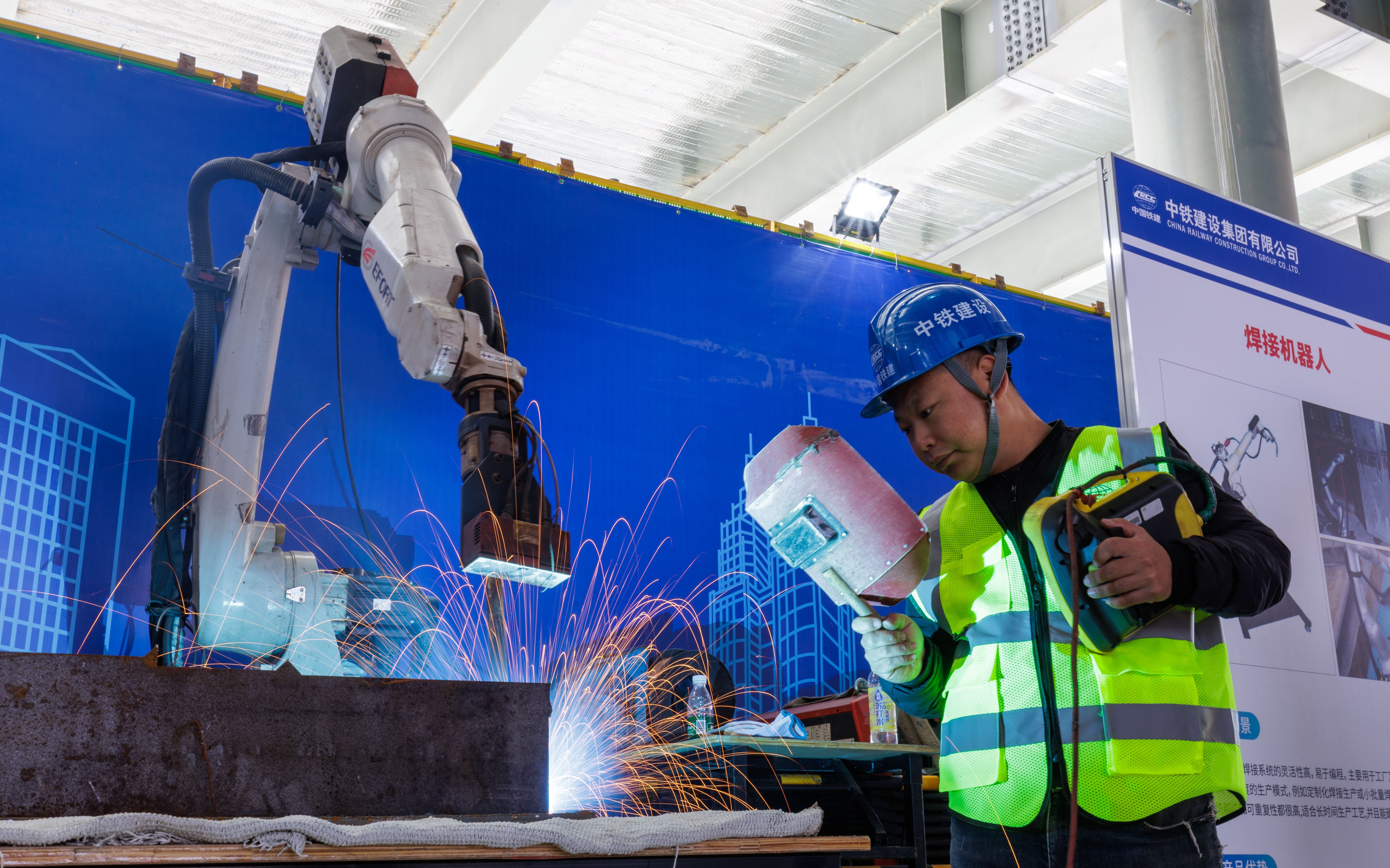 焊接机器人现场演示。新京报记者 王子诚 摄