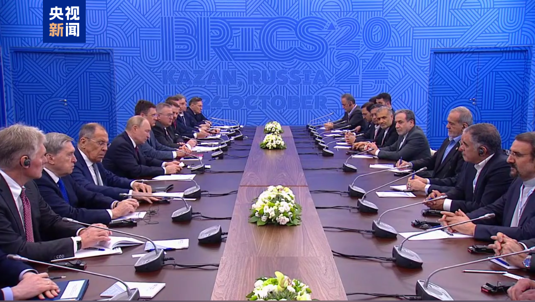 据央视新闻消息,当地时间10月23日,俄罗斯总统普京在喀山会见伊朗总统佩泽希齐扬。