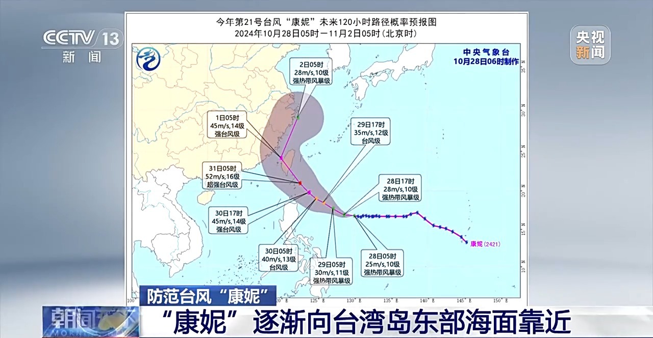台风“康妮”强度逐渐增强 向台湾岛东部海面靠近