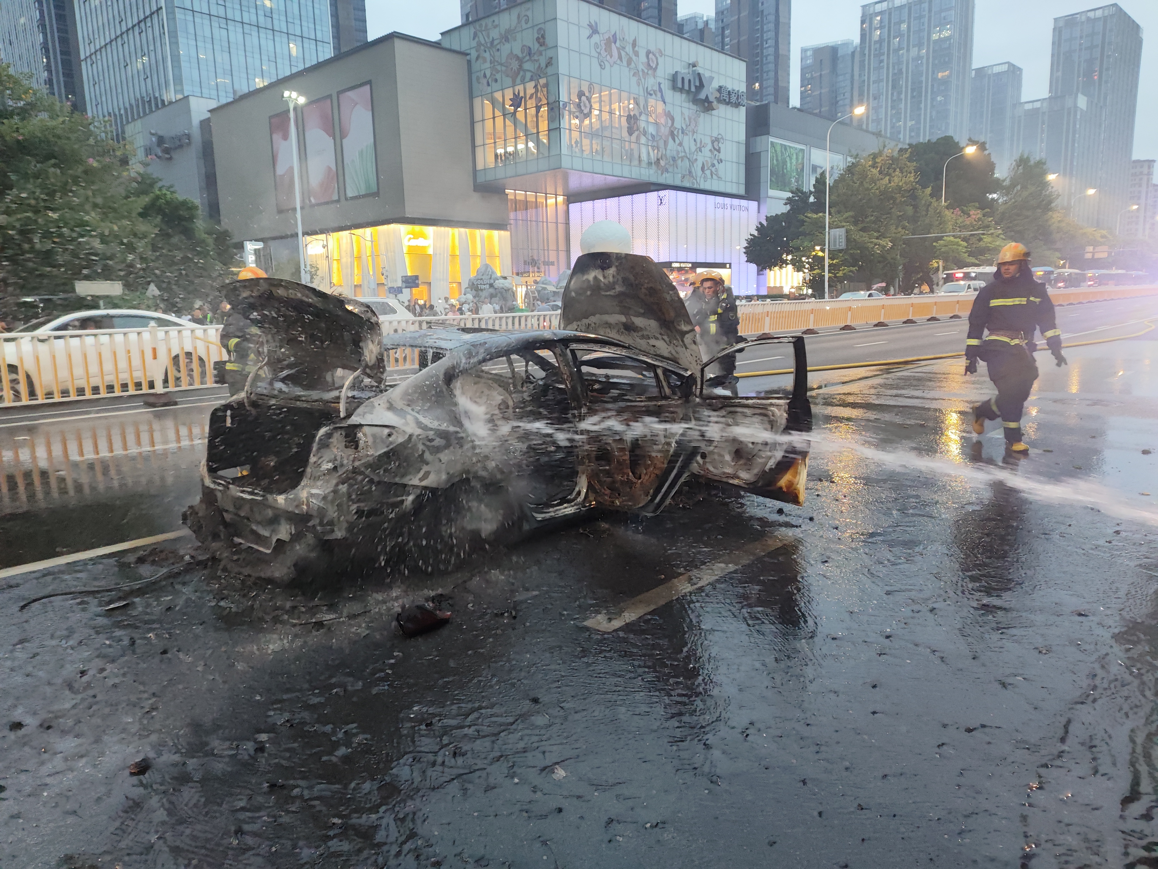 车辆明火被扑灭。 图源:福州市消防救援支队