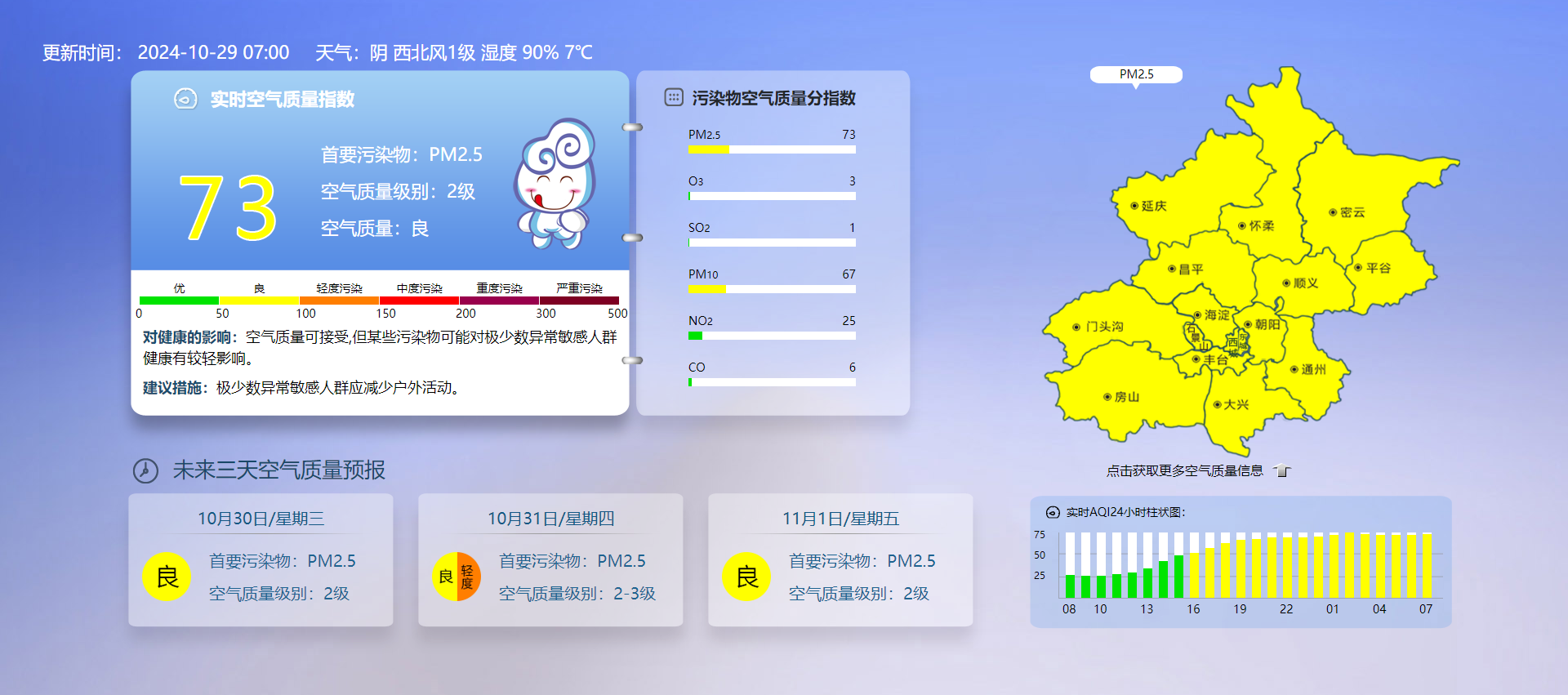 据北京市生态环境监测中心今早7时数据,目前实时空气质量指数73,首要污染物PM2.5,空气质量良。