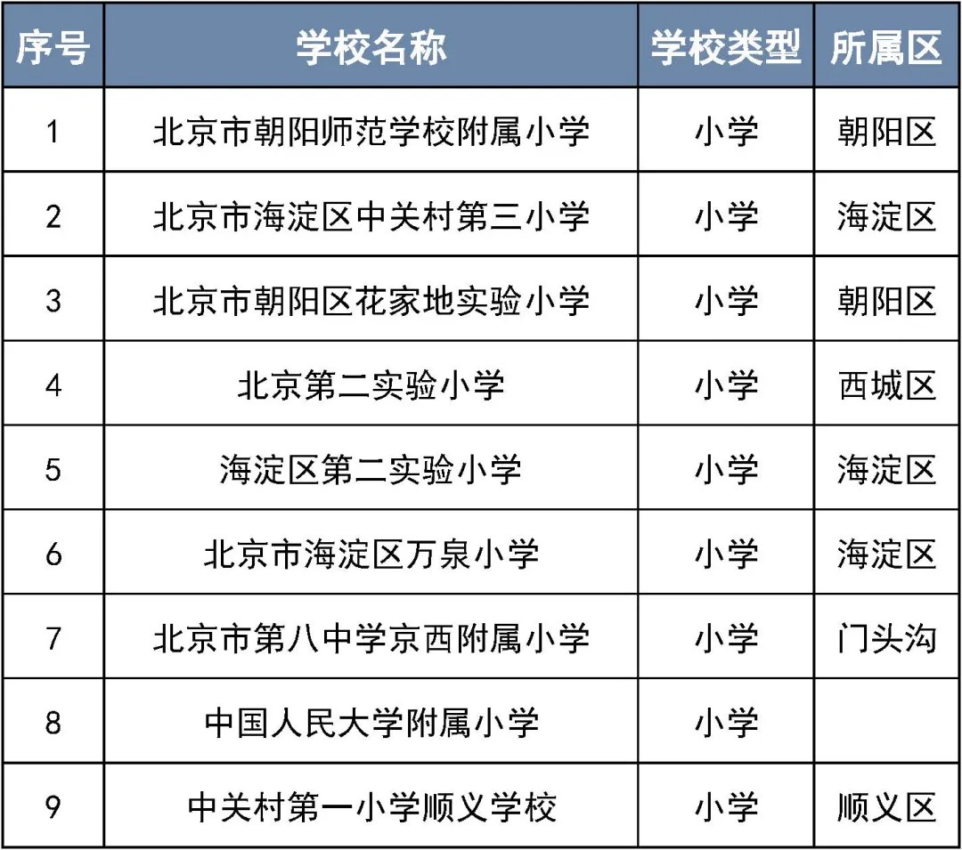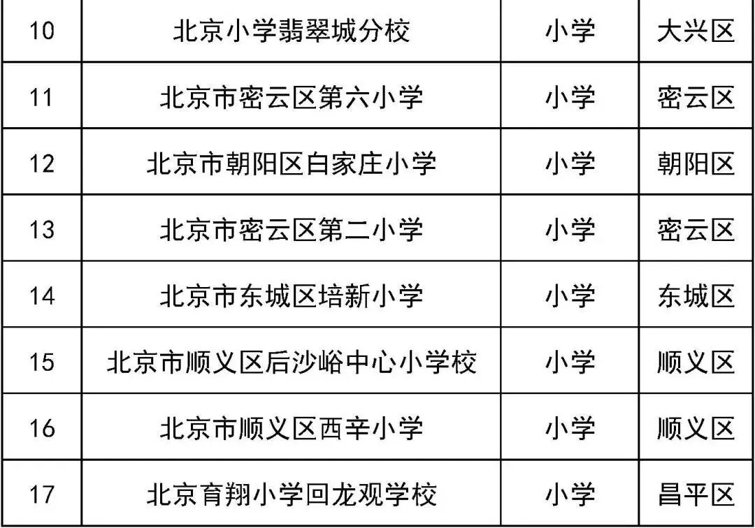 第二批北京市智慧校园示范校名单(小学)