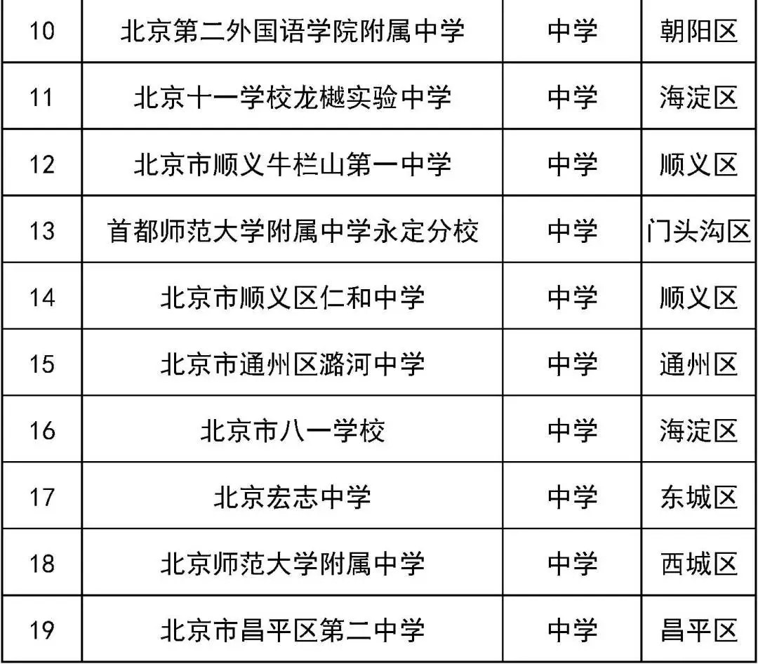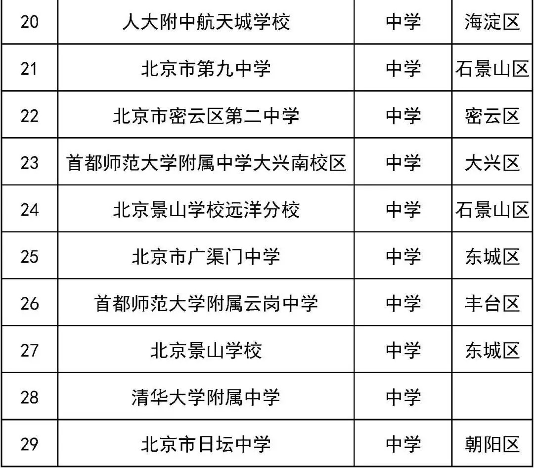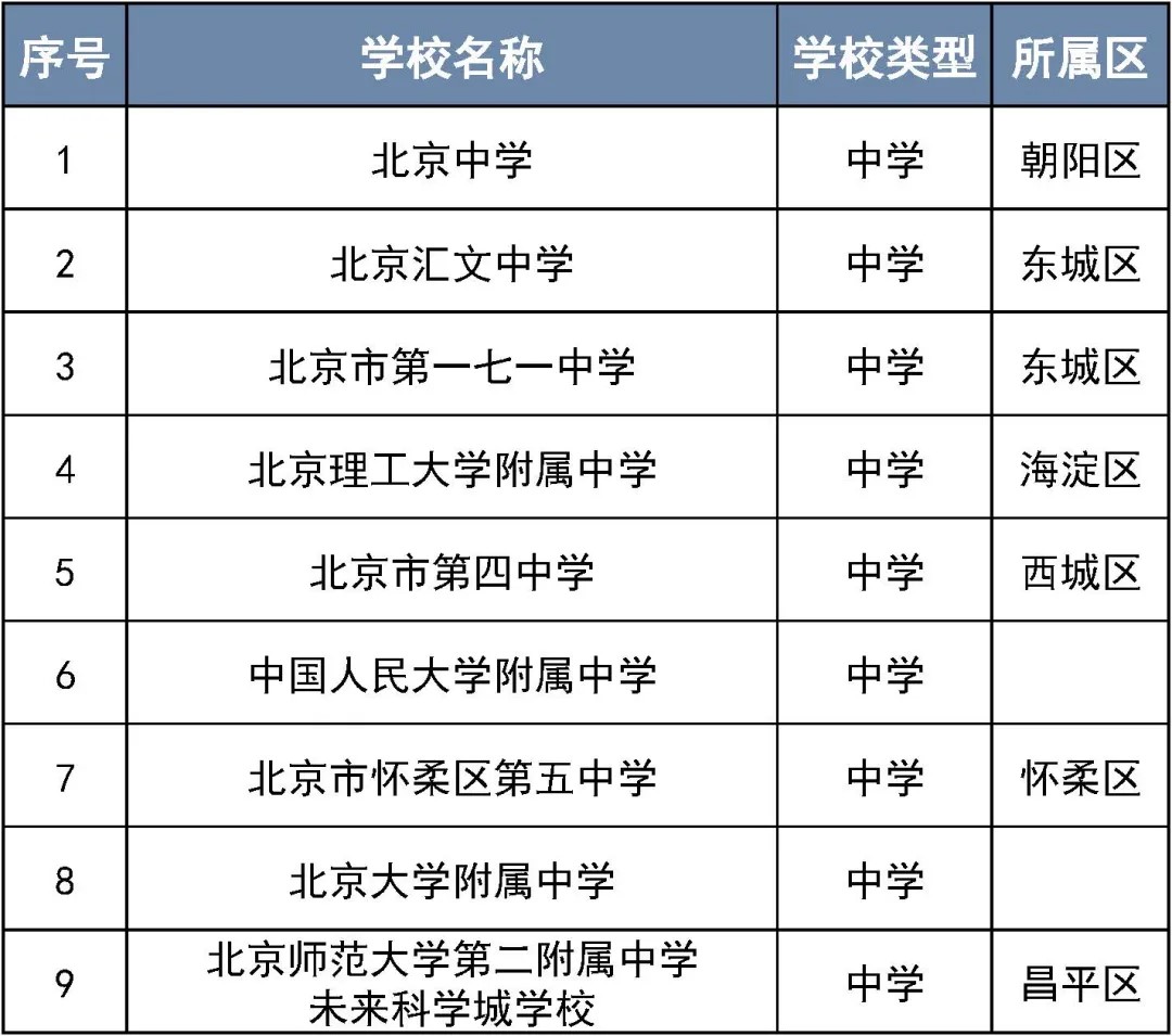第二批北京市智慧校园示范校名单(中学)