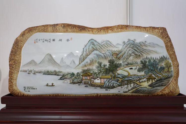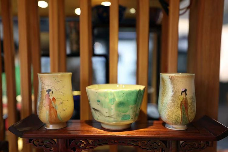 本届陶瓷文化周汇聚众多江西省优秀陶瓷艺术作品,包括艺术陶瓷、日用陶瓷、文创陶瓷等多个种类,集中展示江西省陶瓷行业的发展成果。图为现场展示的《春耕瓷》。