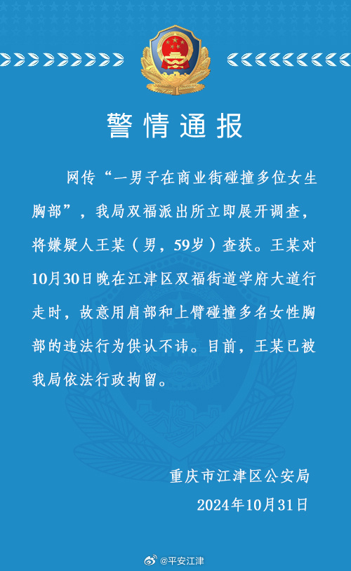 一男子在商业街碰撞多位女生胸部?重庆警方:嫌疑人已被行拘