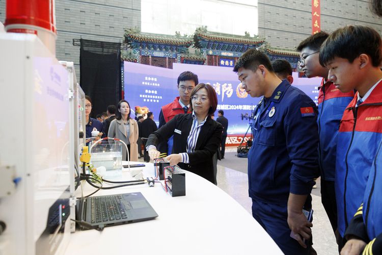 工作人员讲解安全用电智慧保护系统。西城消防宣传月期间还将举办进校园、进商场、进机关等活动,以增强全社会的消防安全责任意识。