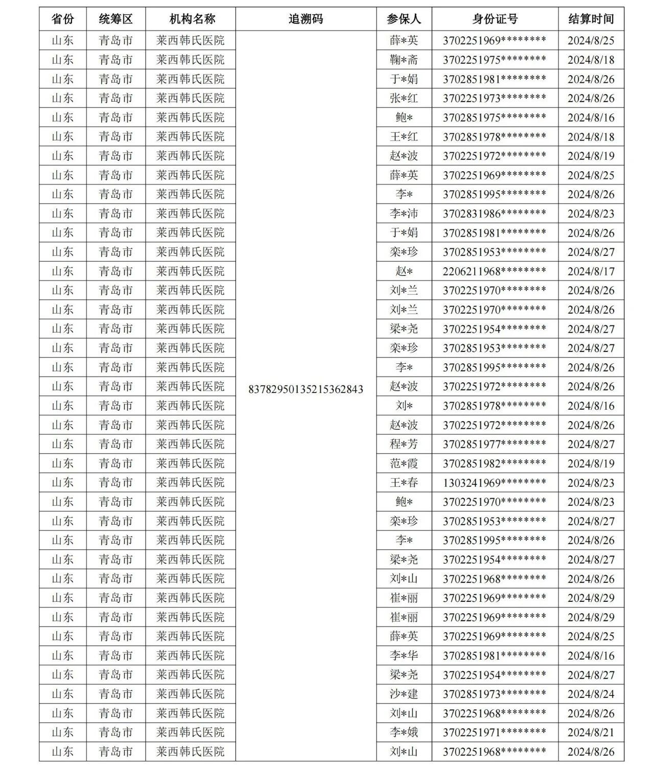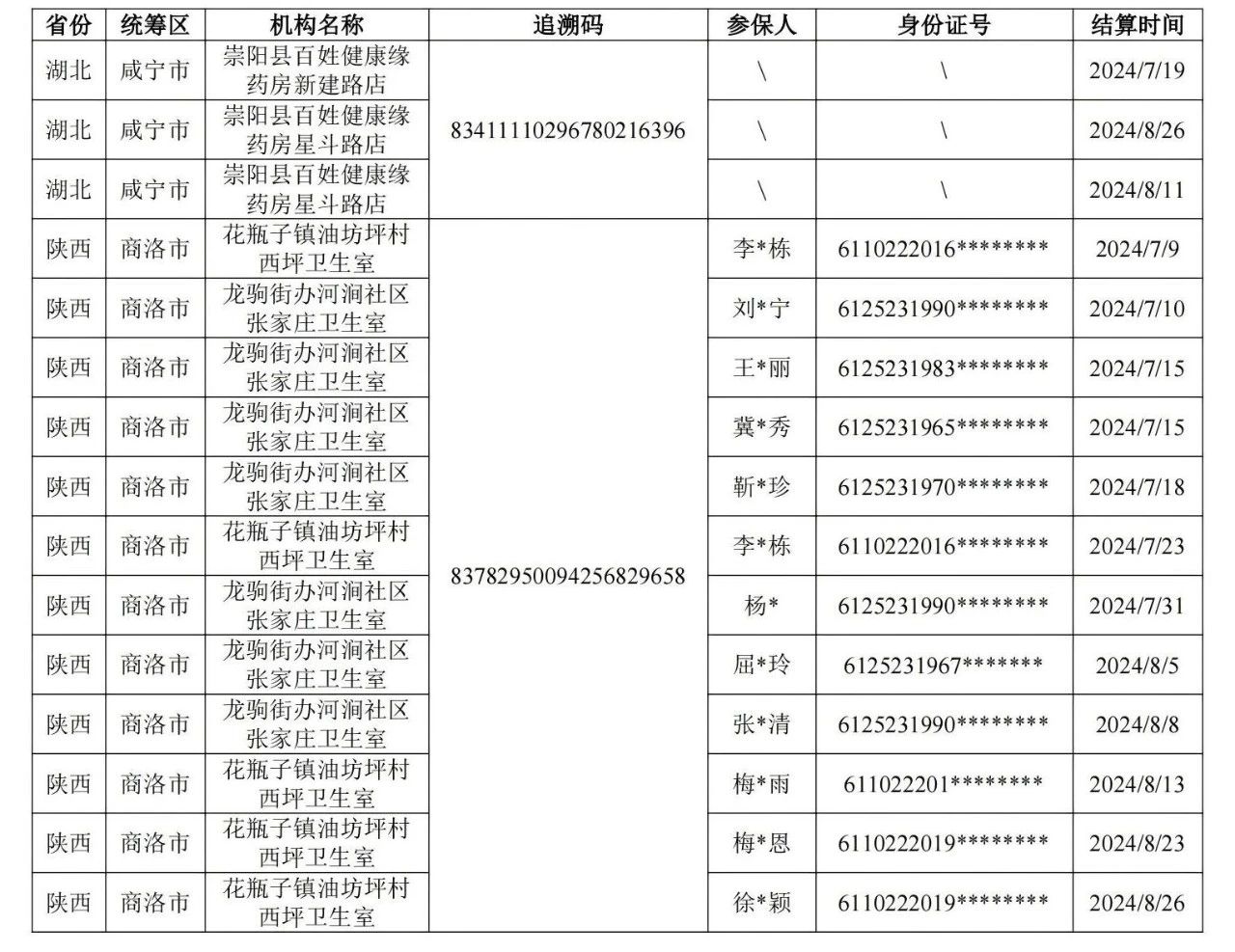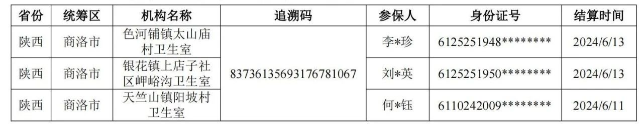 (三)疑似假药(同一药品追溯码在不同定点医药机构发生结算,且时间相近),如下表: