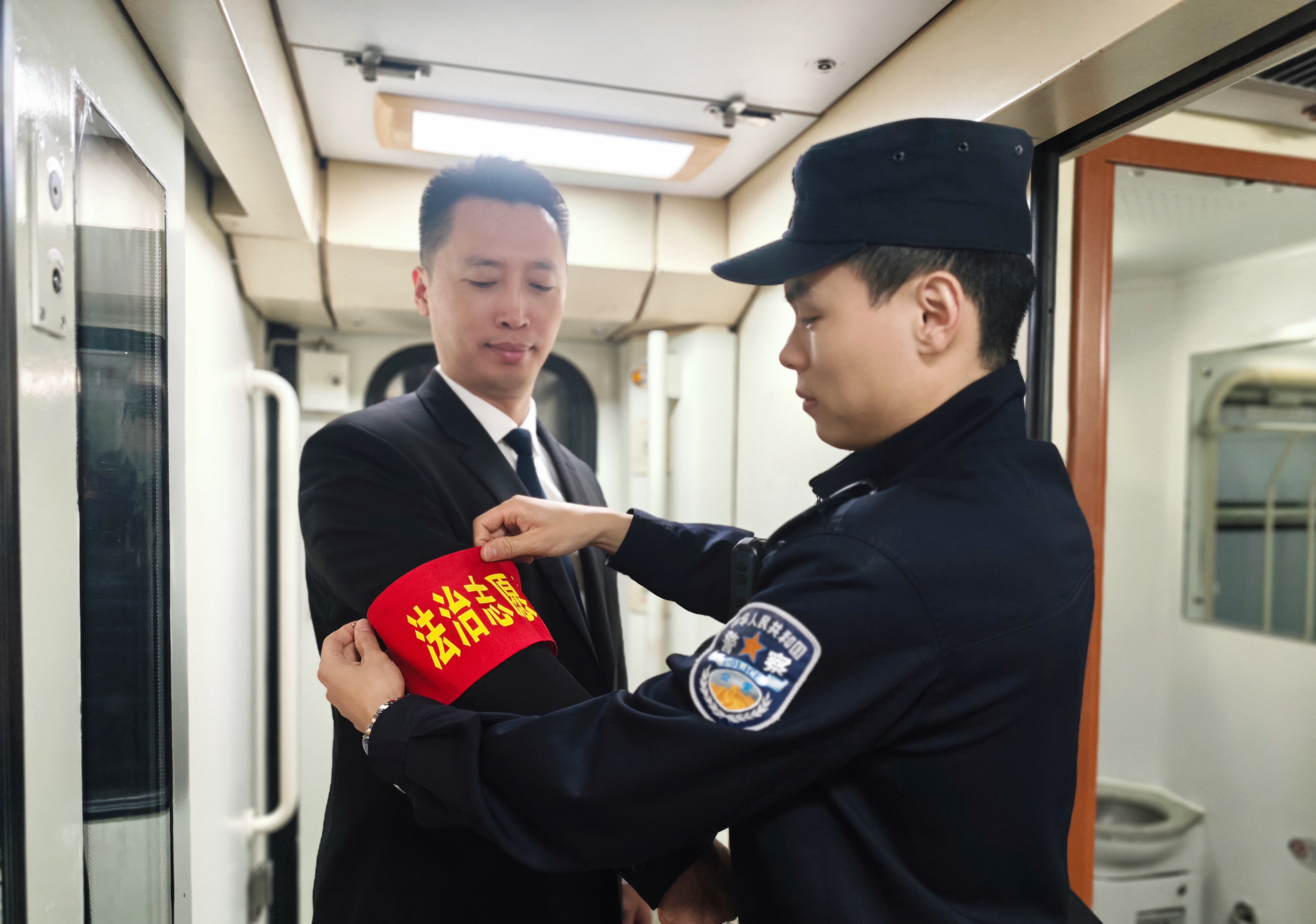 上海处乘警支队在原有“平安列车志愿者”基础上,新增列车“法治志愿者”,与乘警支队签约合作的志愿律师团队上车后,会主动表明身份,承担起“法治志愿者”工作;在列车始发时,乘警也会招募具有人民调解员、律师资质的旅客作为“法治志愿者”,并为其佩戴袖标,协助乘警开展列车法治宣传、矛盾纠纷化解。同时,乘警支队依托公安处“三所联动”专班,建立“云宣讲、云调处”列车专线,为列车矛盾纠纷调处提供“24小时在线”支撑。