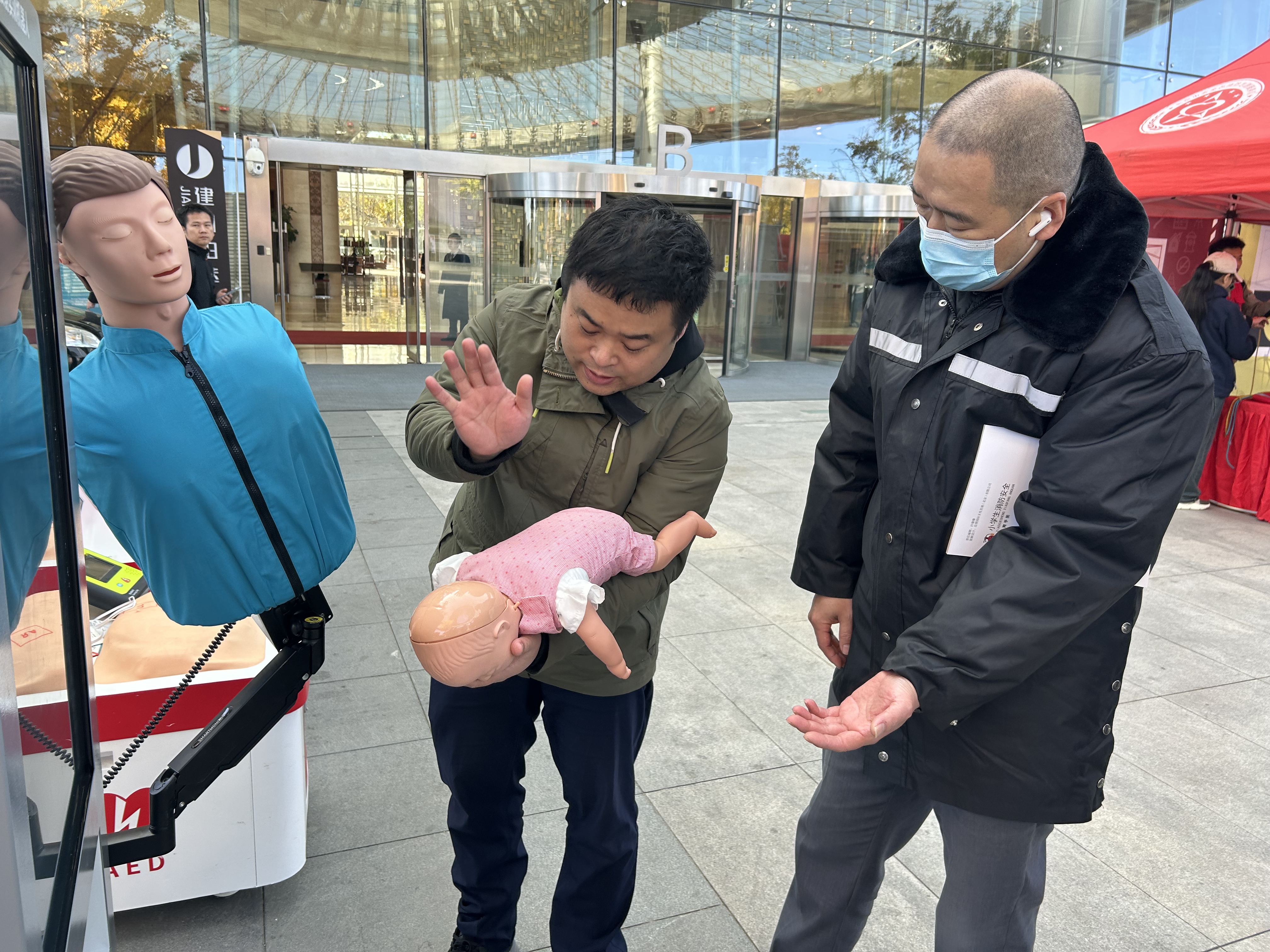 新京报记者看到,现场设置了烟雾逃生屋、绳索体验区、急救体验区、消防器材展示区等。启动仪式结束后,参会人员在现场进行参观和体验。在绳索体验区,市民们好奇地拿着绳子,团团围住老师,模仿着老师的动作;在急救体验区,市民们在老师的指导下在人体模型上练习海姆立克急救法和心肺复苏;在烟雾逃生屋门前,有不少人在消防员的鼓励下,弯腰准备进入烟雾内……