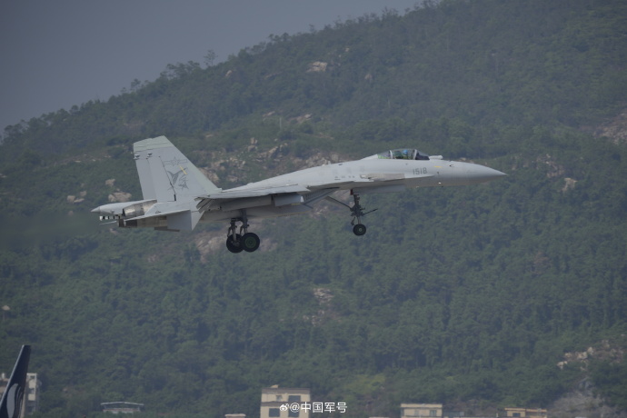 海军重型舰载战斗机歼-15T落地珠海