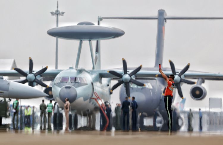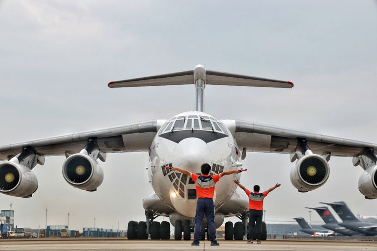 第十五届中国航展将于11月12日正式开幕,珠海机场采取多项措施,全力保障航展顺利举办。机场从组织领导、服务保障、安保措施等多方面入手,成立以总经理为组长的航展安全工作领导小组,多次召开保障会议及实地考察,明确各部门职责和措施。图为工作人员指挥执行航展任务的飞机入位。