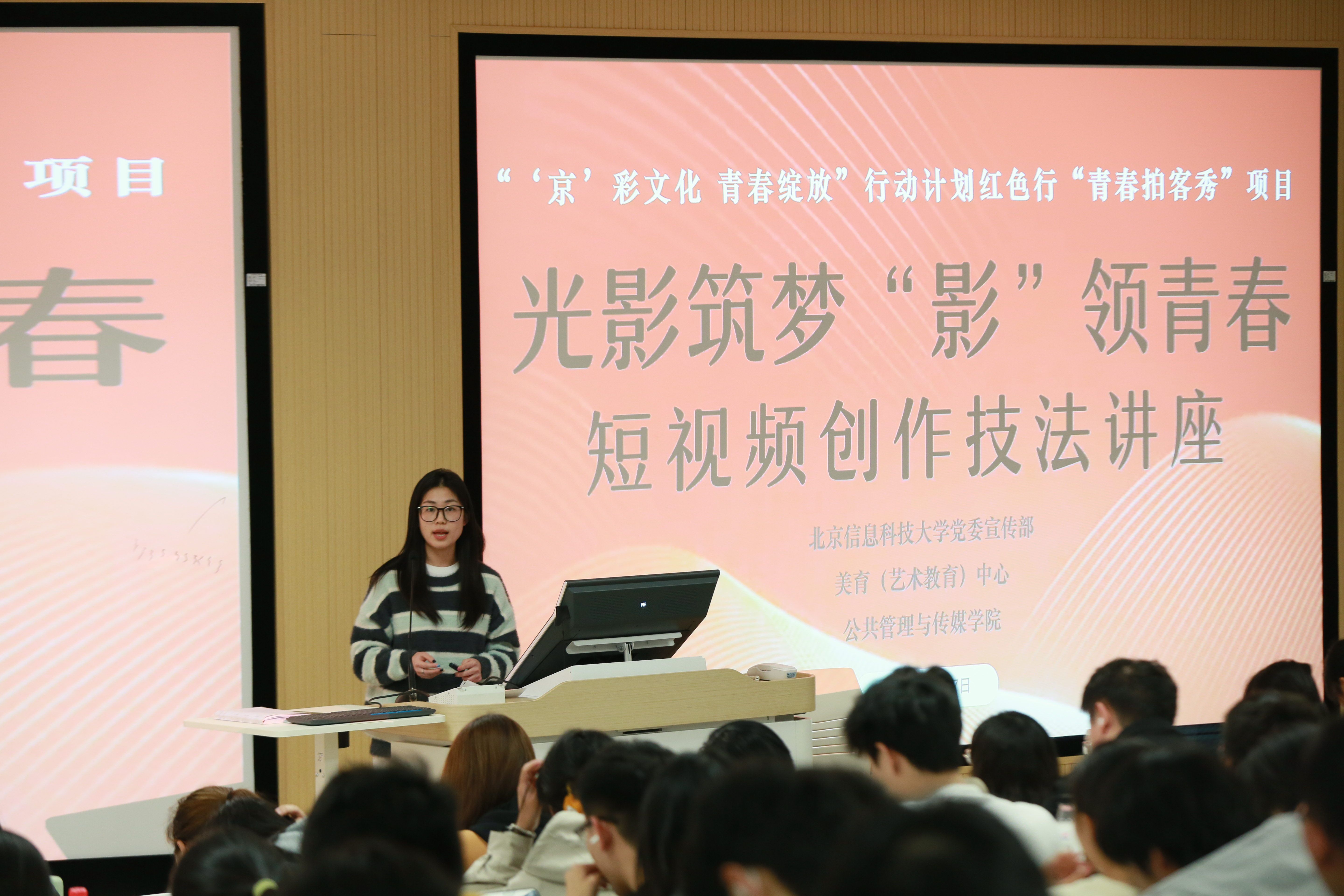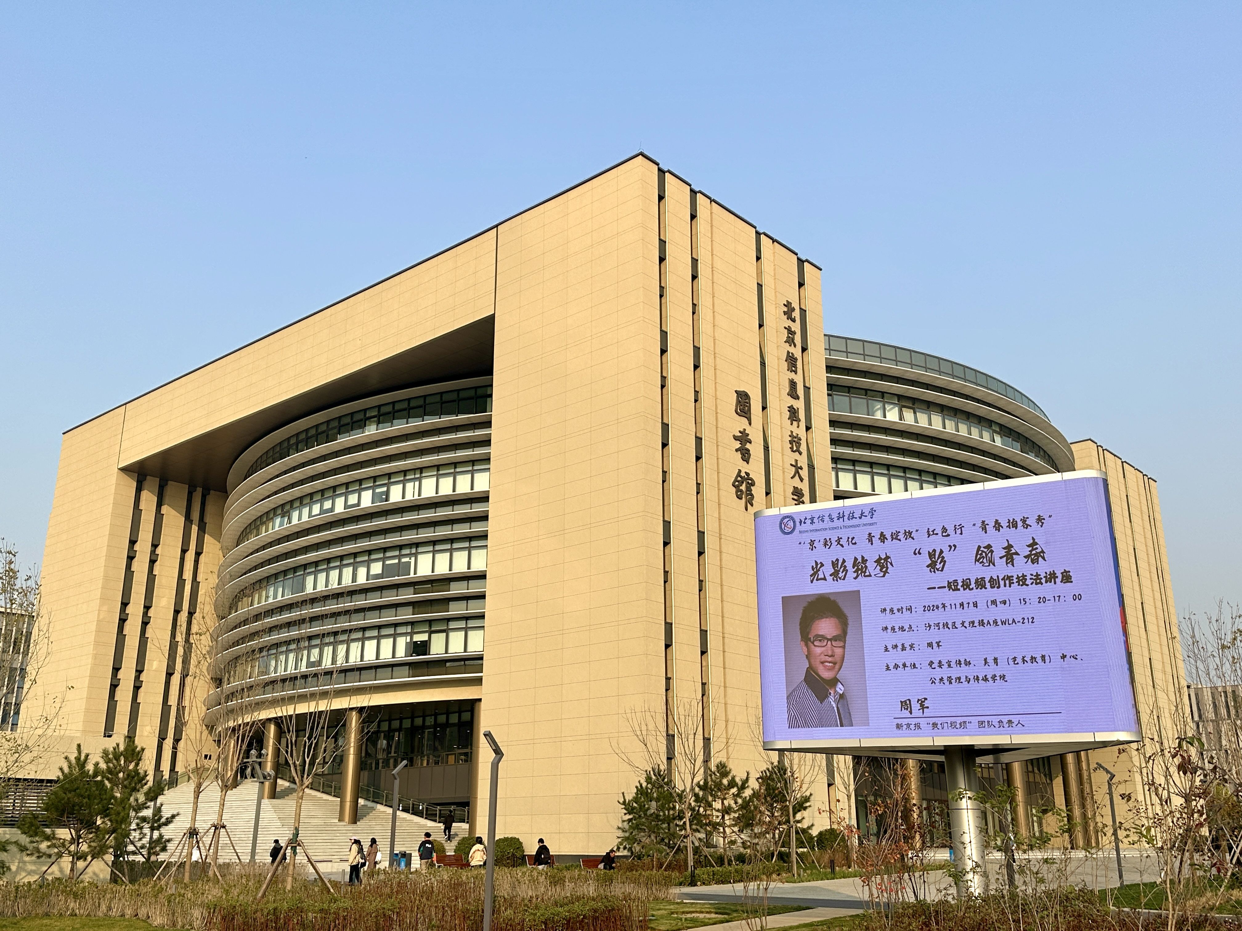 11月7日下午,“光影筑梦,‘影’领青春——青春拍客秀短视频创作技法讲座”系列活动第二场在北京信息科技大学成功举办,为北京信息科技大学的300余名师生带来了一堂生动的视频实践交流课。本次活动是“‘京’彩文化 青春绽放”行动计划红色行“青春拍客秀”短视频征集展示项目的系列活动之一,由新京报社和中国人民抗日战争纪念馆共同承办。