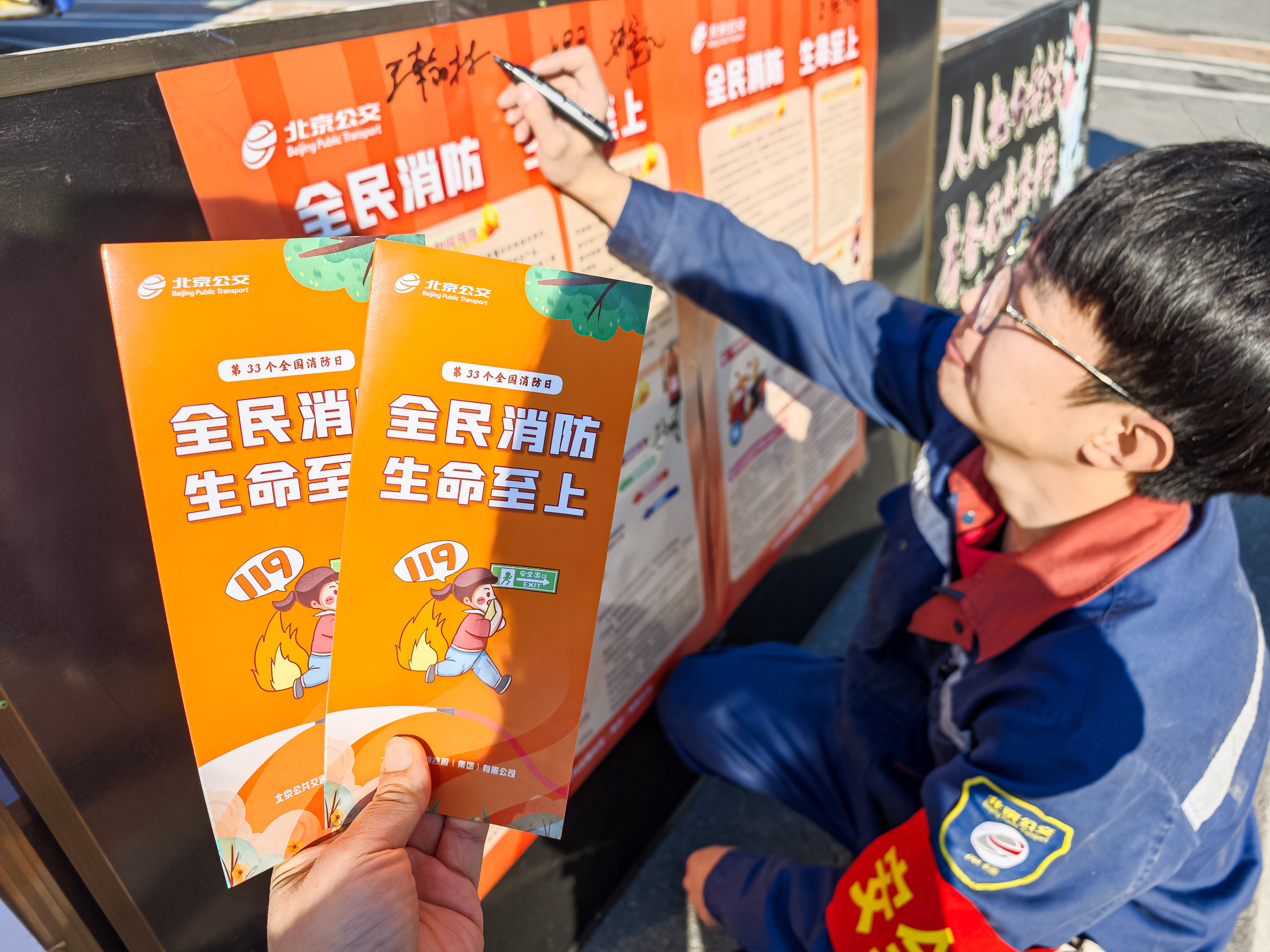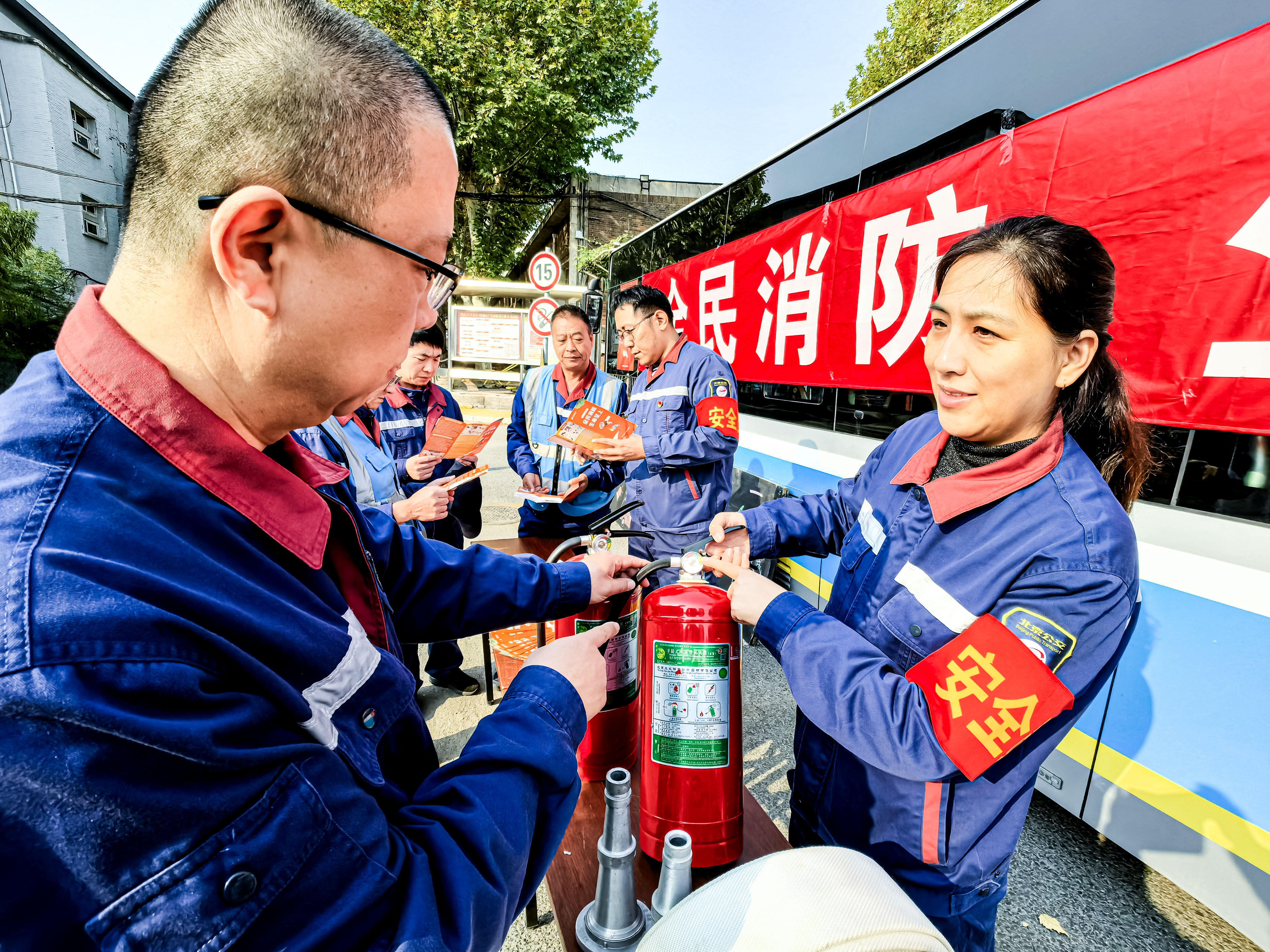 北京公交集团保修分公司开展“全民消防、生命至上”消防宣传月活动。图源:北京公交集团保修分公司