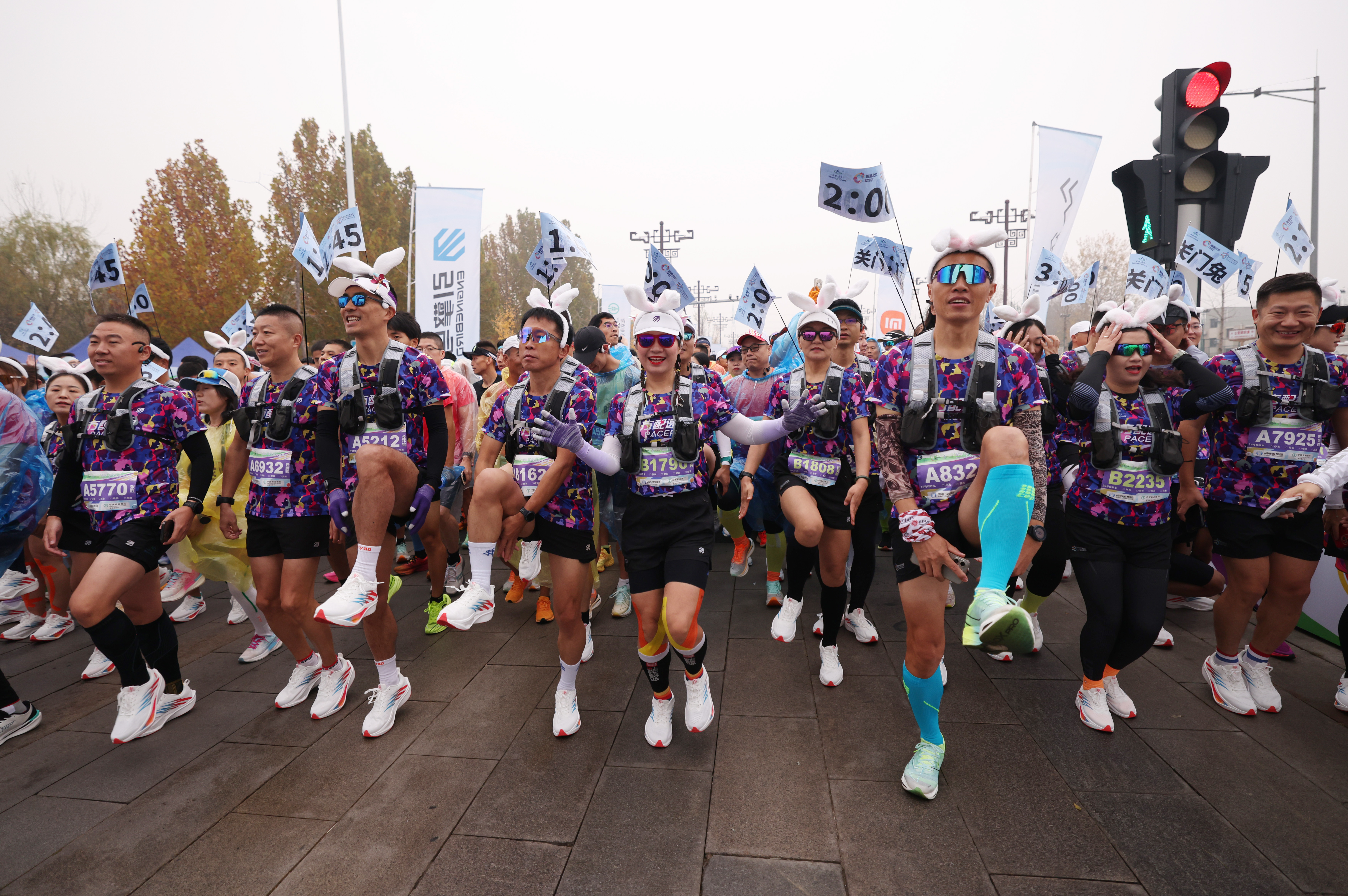 开赛前,跑者在进行热身。新京报记者 李木易 摄
