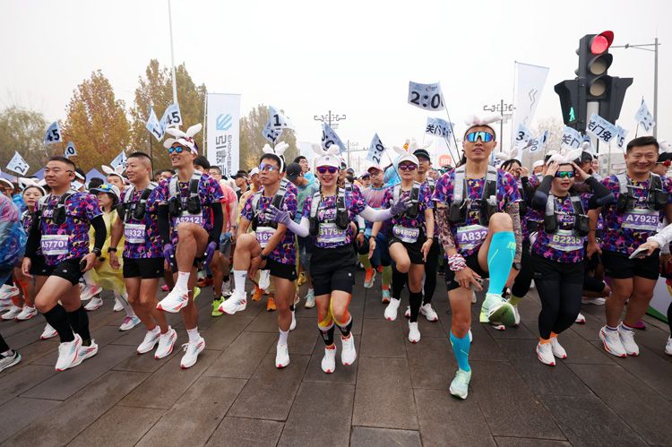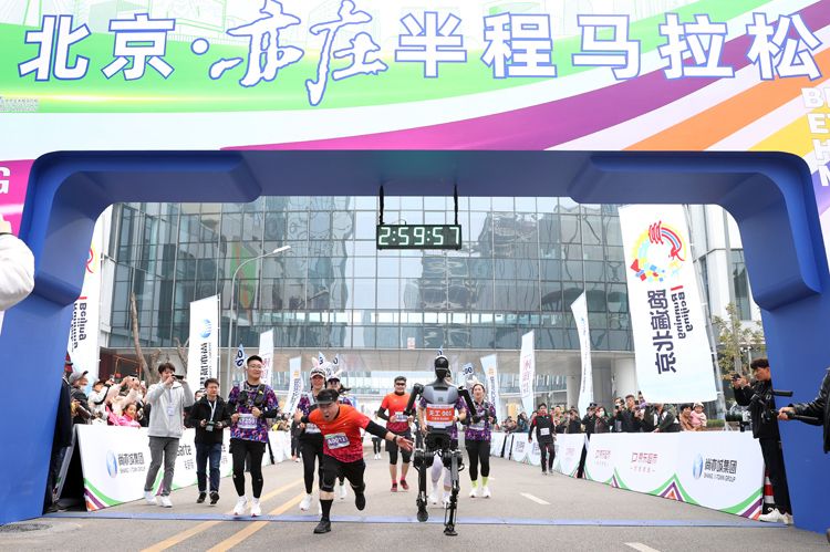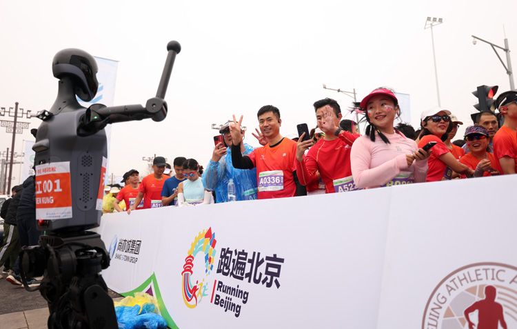 人形机器人为北京亦庄半马“加油打气”