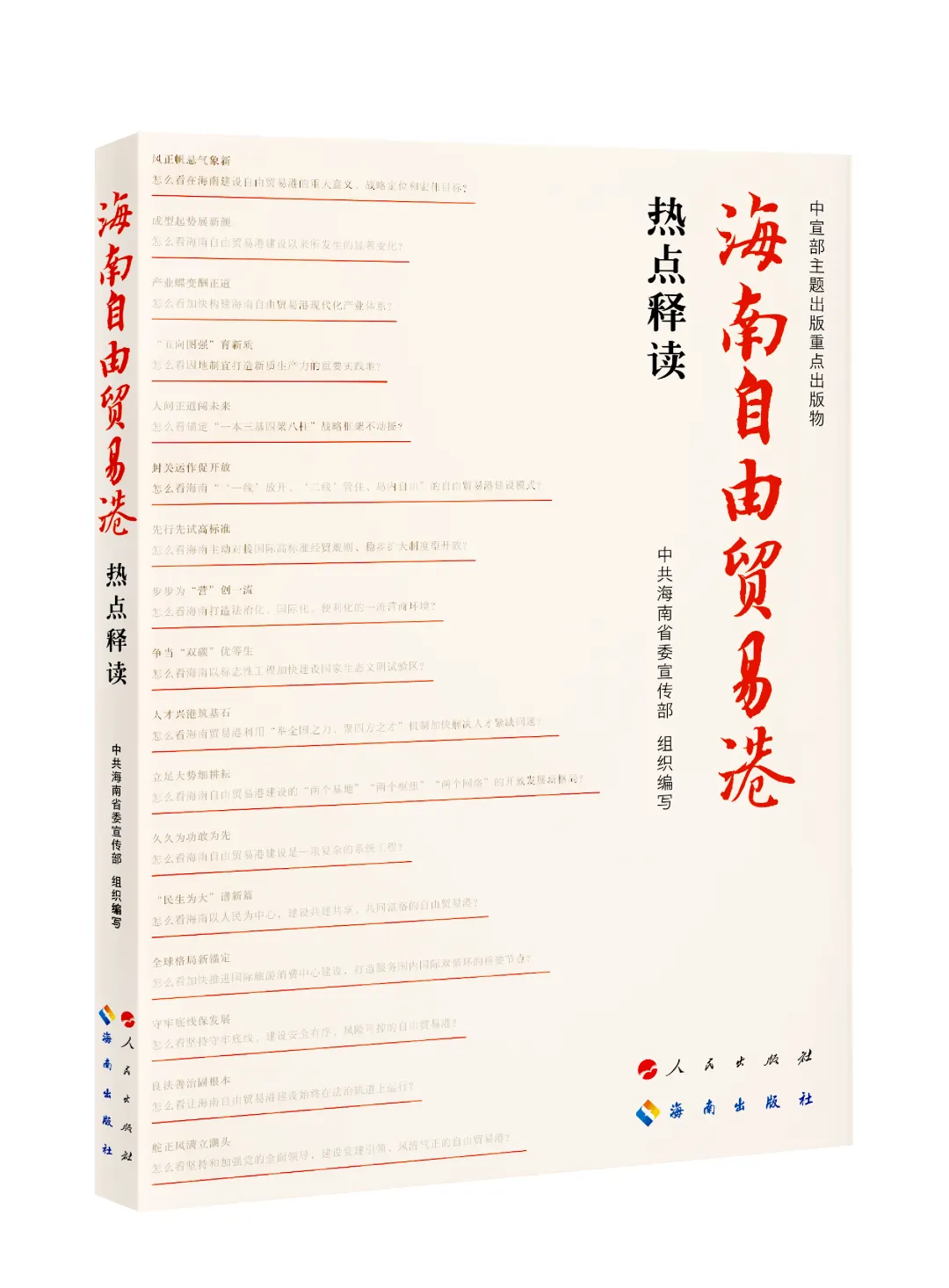 该书由中共海南省委宣传部组织编写,列入中宣部2024年主题出版重点出版物。全书着眼海南自由贸易港建设全局,系统客观、简明扼要地介绍了海南自由贸易港建设6年多来的创新举措、有效经验、建设成果,重点从17个方面深入浅出地阐释和讲解国内外普遍关注的自贸港建设热点问题。