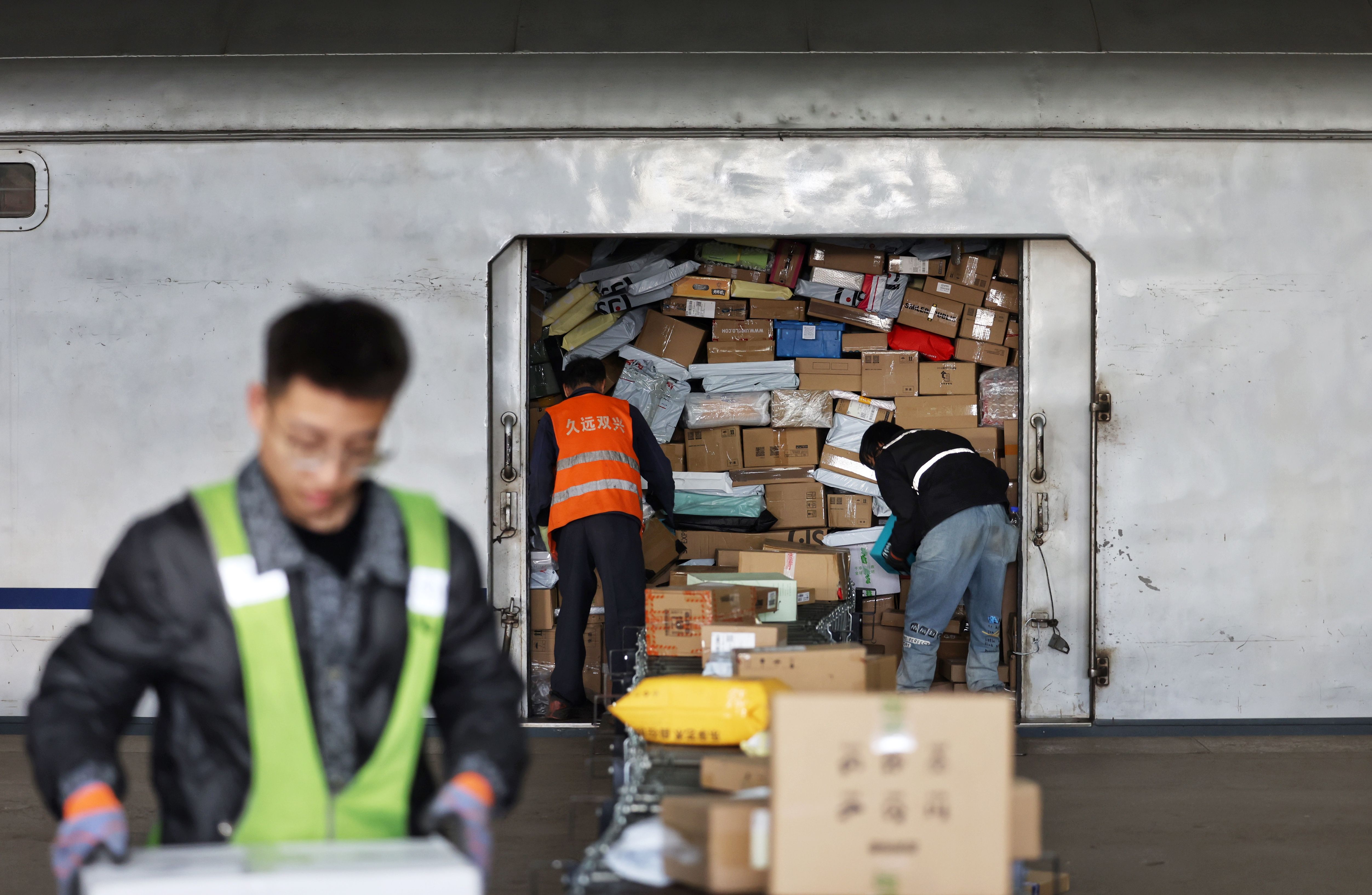 从10月底开始,各大电商平台陆续开启了购物节活动。面对“双11”货物运输高峰,中国铁路北京局以城市间批量快件货物“当日达”为目标,高质量组织开行特快货物班列。