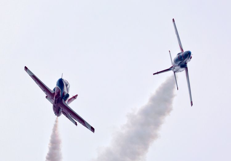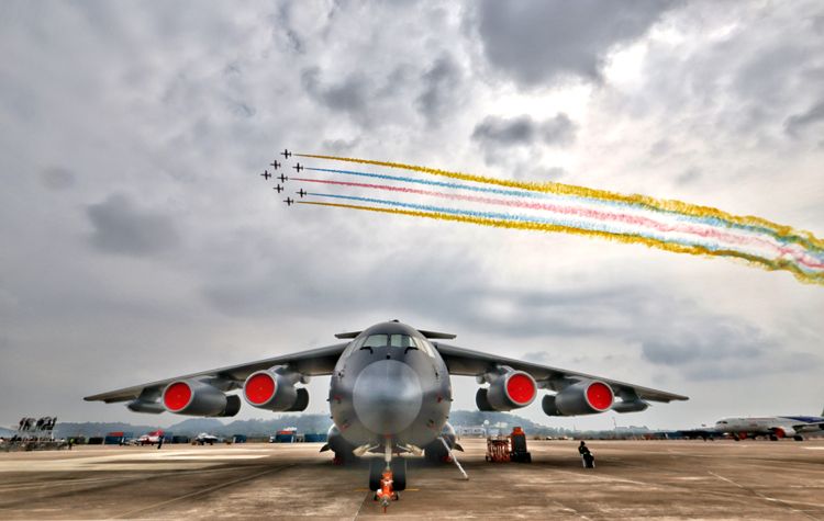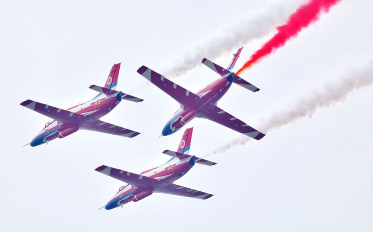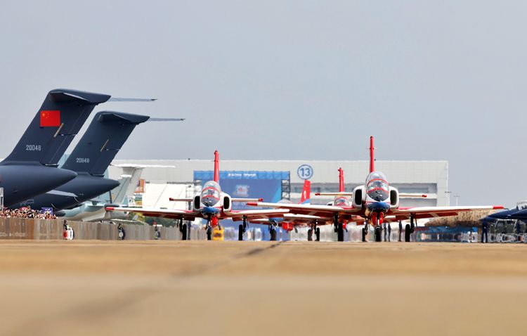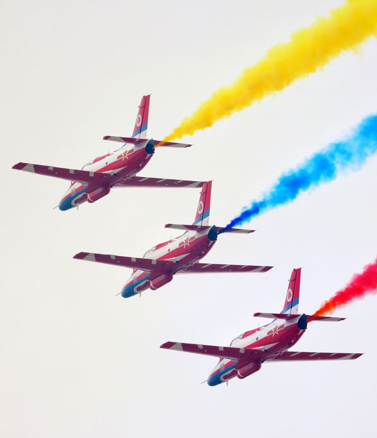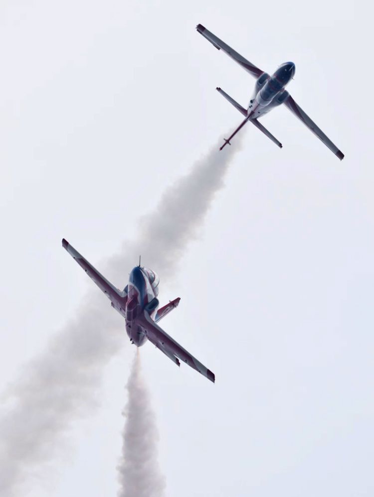 11月11日是人民空军成立75周年,在第十五届中国航展现场,“红鹰”飞行表演队结合航展飞行表演适应性训练,以独特方式为人民空军庆生。