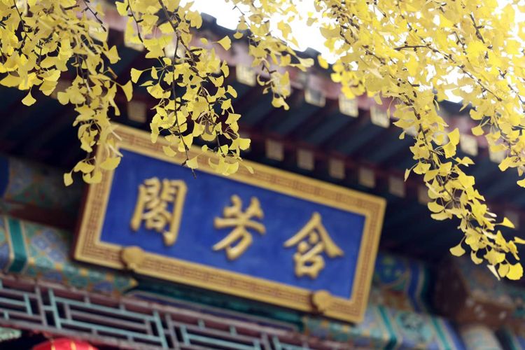 银杏与仿古建筑相映成趣,构成美丽的图画。