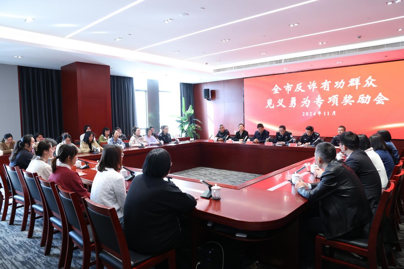 新京报讯(记者左琳 通讯员李国振 韩佳棋)11月8日上午,江苏省常州市见义勇为基金会、常州市公安局举行全市反诈有功群众见义勇为专项奖励会,通报了今年以来打击治理电信网络违法犯罪工作情况,并对6名反诈有功群众代表进行了表彰奖励,包括常州市反诈中心工作人员、银行工作人员等。