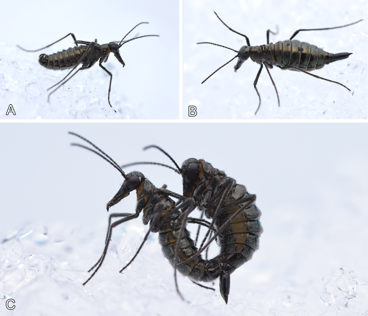 动物生态学团队王吉申课题组此次在新疆发现了3种雪蝎蛉,分别为阿尔泰雪蝎蛉、贝氏雪蝎蛉和伊犁雪蝎蛉,并对这些雪蝎蛉开展了一系列形态学和生物学方面的研究,提供了幼期形态、交配行为等方面的详细信息。这一成果将中国已知长翅目昆虫科的数量从3个提升到4个,同时进一步加强了学界对中亚地区昆虫多样性、地理区划等方面的认识。