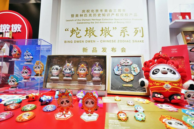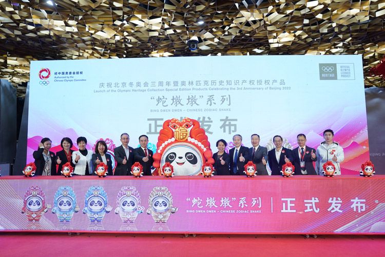 11月19日,庆祝北京冬奥会三周年暨奥林匹克历史知识产权授权产品——“冰墩墩”蛇年新春特别版“蛇墩墩”系列新品在京发布,将于本周五(11月22日)在北京、上海、天津、重庆、广州五市率先首发开售。