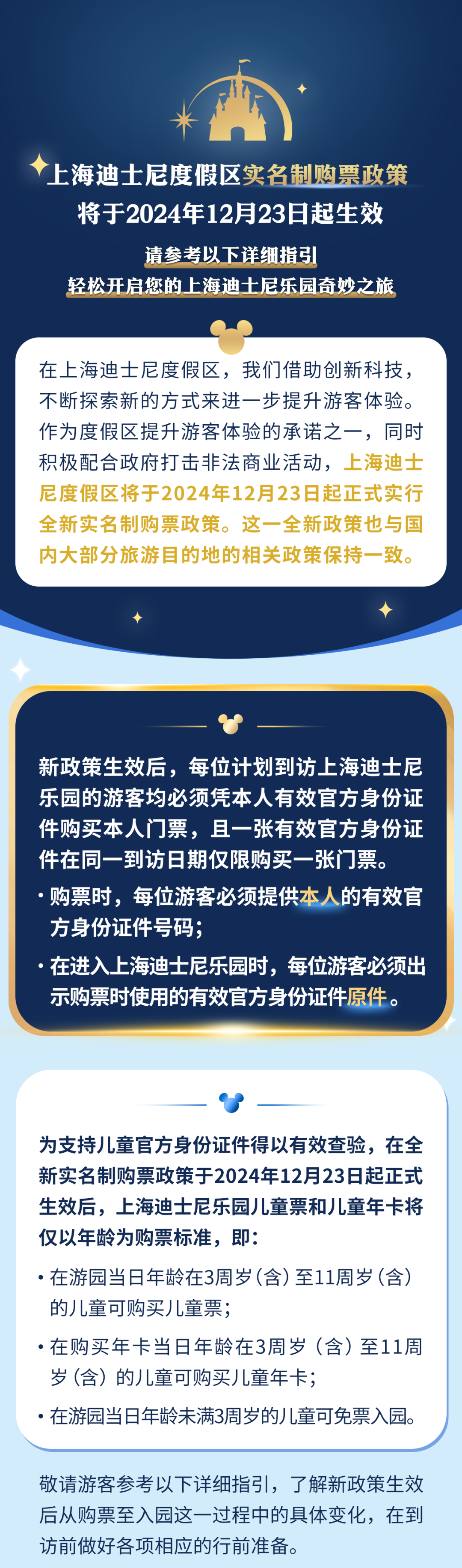 新京报讯 据上海迪士尼度假区发布微信公众号消息,上海迪士尼度假区实名制购票政策将于2024年12月23日起生效。