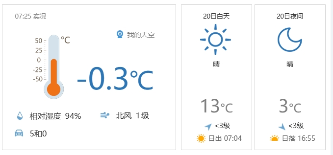 今天白天晴间多云,北转南风二三级,最高气温13℃;夜间晴间多云,南转北风二级左右,最低气温3℃。