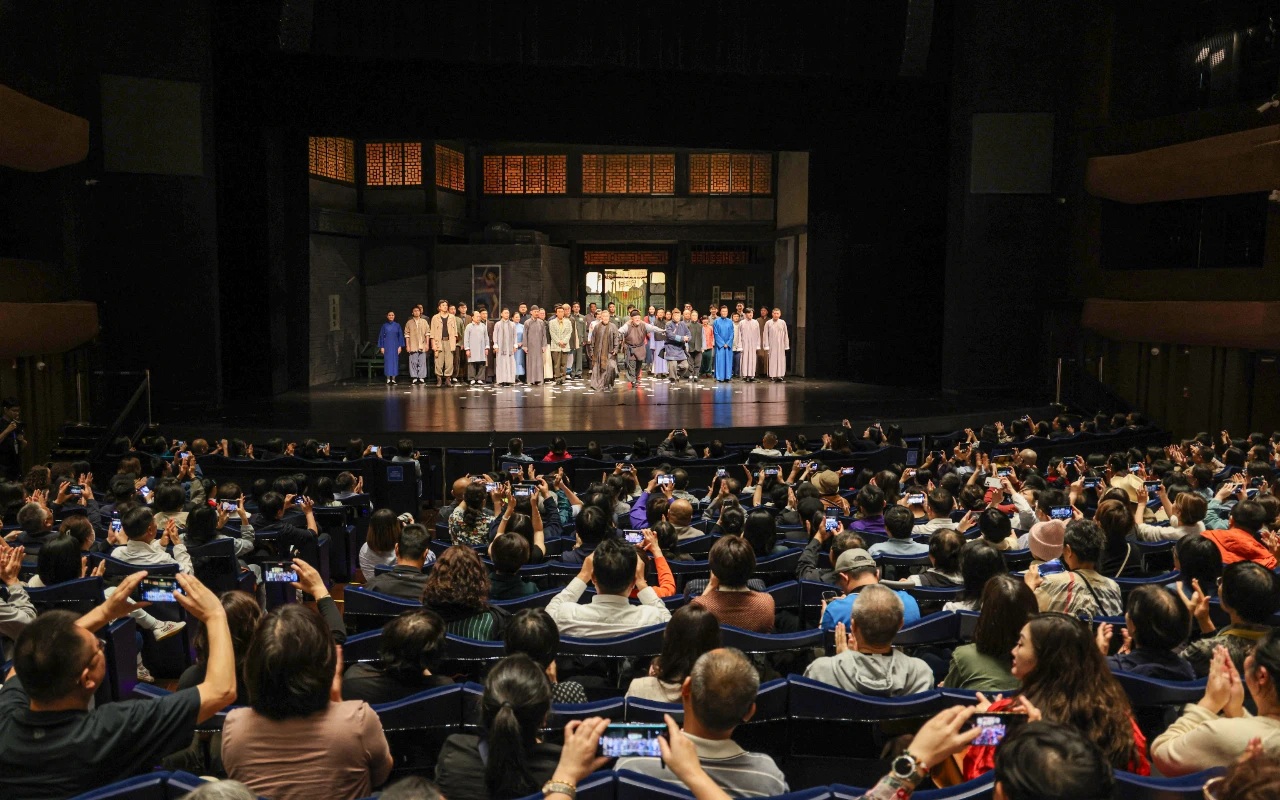 《茶馆》谢幕时观众们纷纷拍照留影。摄影:李春光、李洪博