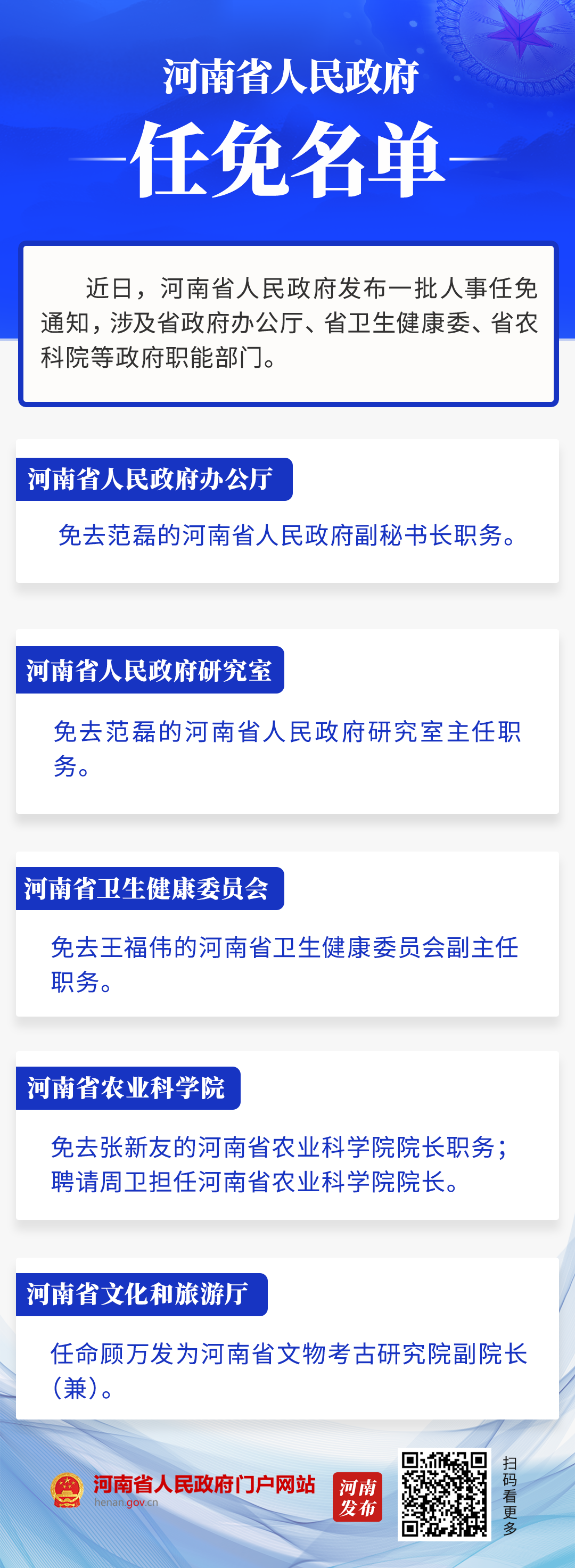 新京报讯 据河南发布微信公众号消息,河南省政府新任免一批干部,具体如下: