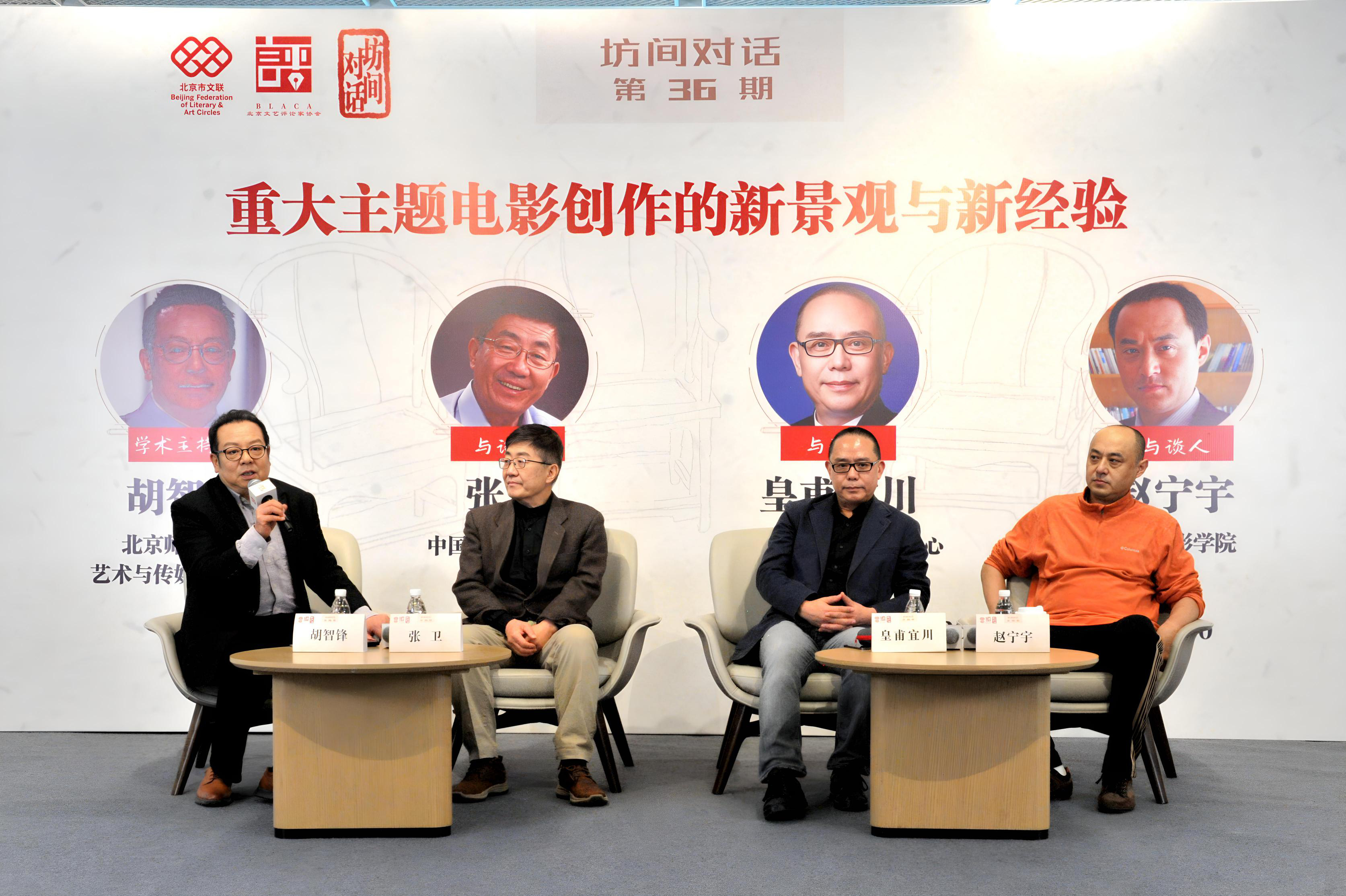 新京报讯(记者滕朝)近日,由北京市文联主办,北京文艺评论家协会、北京电影家协会承办的文艺评论系列学术对谈活动“坊间对话第36期:重大主题电影创作的新景观与新经验”举办。活动邀请中国电视艺术家协会副主席、北京文艺评论家协会副主席、北京师范大学艺术与传媒学院教授胡智锋担任学术主持,中国电影评论学会常务副会长、研究员张卫,中国电影艺术研究中心(中国电影资料馆)二级研究员、《当代电影》杂志社社长兼主编皇甫宜川,北京电影学院教授、中国电影表演艺术学会副会长赵宁宇就重大主题电影创作的新景观、新经验等话题展开对谈。