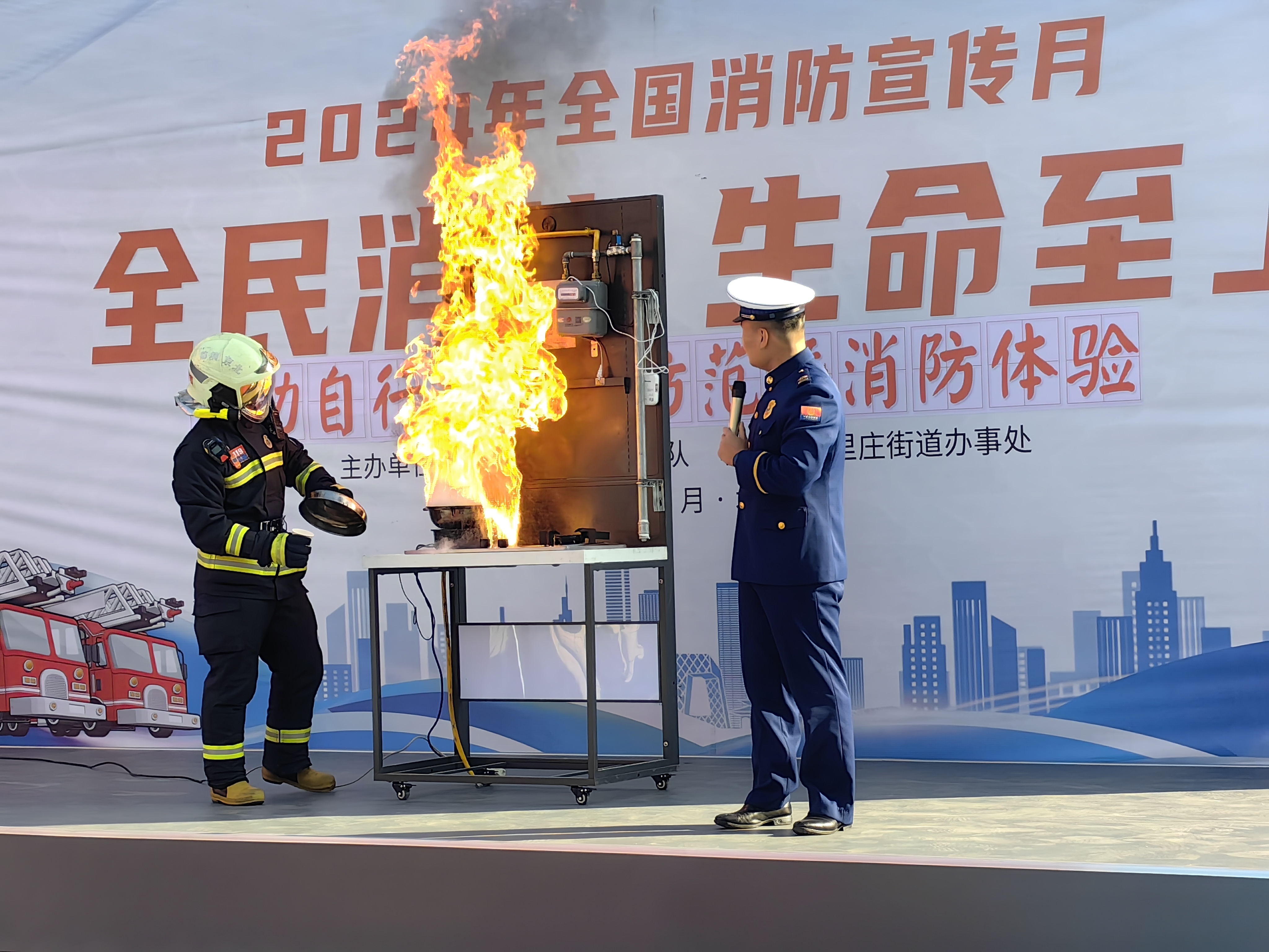 随后,消防员对锂电池发生火灾后,如何正确处置进行了讲解及演示,提示在锂电池发生火灾时,如果充电则要第一时间断电,使用消火栓等进行灭火降温。此外,结合居民家庭常见的火灾风险隐患,消防员还讲解了燃气线路检查要点、油烟道火灾扑救方法等。
