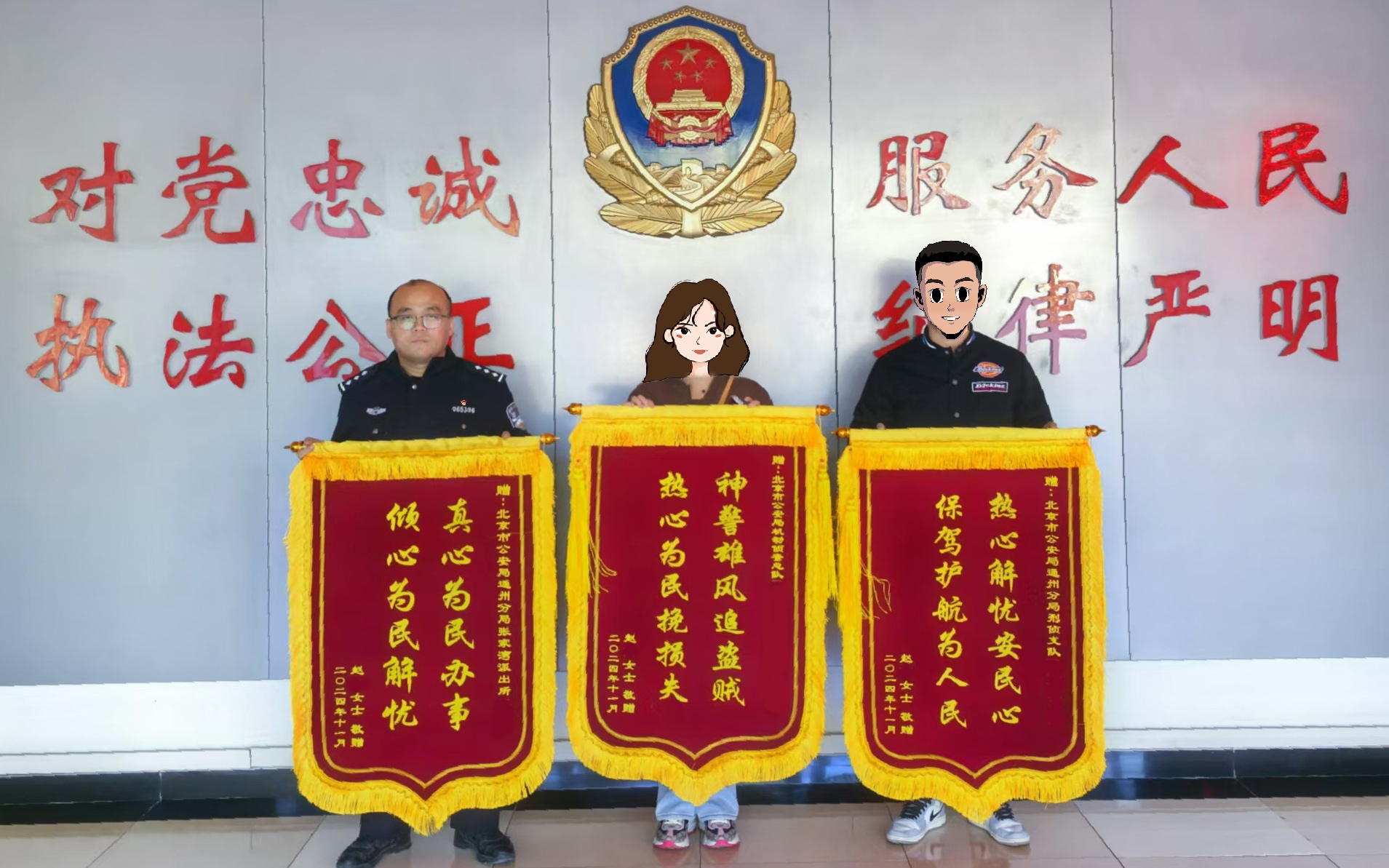 事主赵女士为民警送来锦旗。图源:通州警方