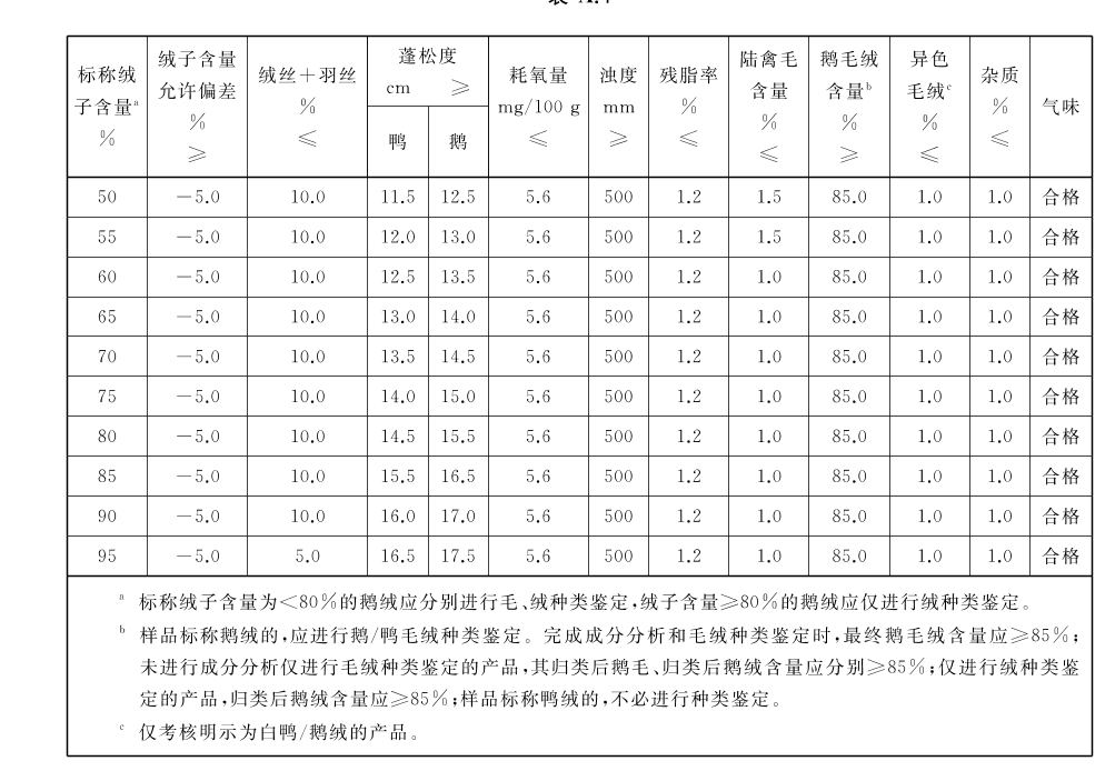 羽绒的品质要求