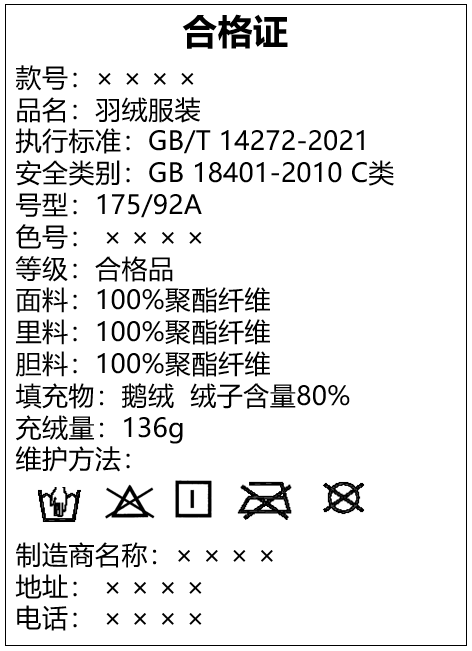 在购买羽绒服时,务必仔细检查产品标签上的信息。标签应包含产品的纤维含量、填充物种类、绒子含量、充绒量、洗涤方式等关键信息。这些信息有助于您了解产品的性能和使用注意事项,确保选择到符合自己需求和安全标准的产品。